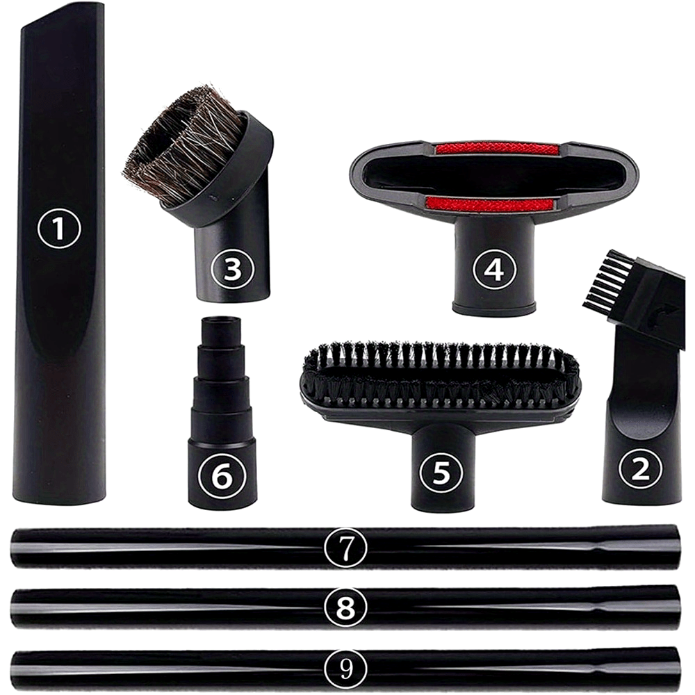 9-chi qismli changyutgich aksessuarlar to'plami, ajraladigan qirralar bilan chang tozalash cho'tkasi, mato uchun asbob, bo'shliq uchun nozil, uzatma tayoqchasi