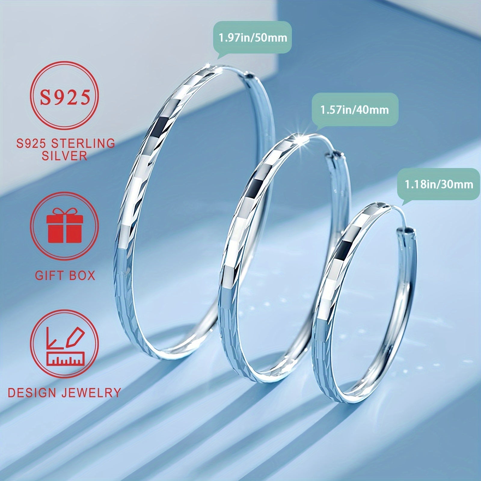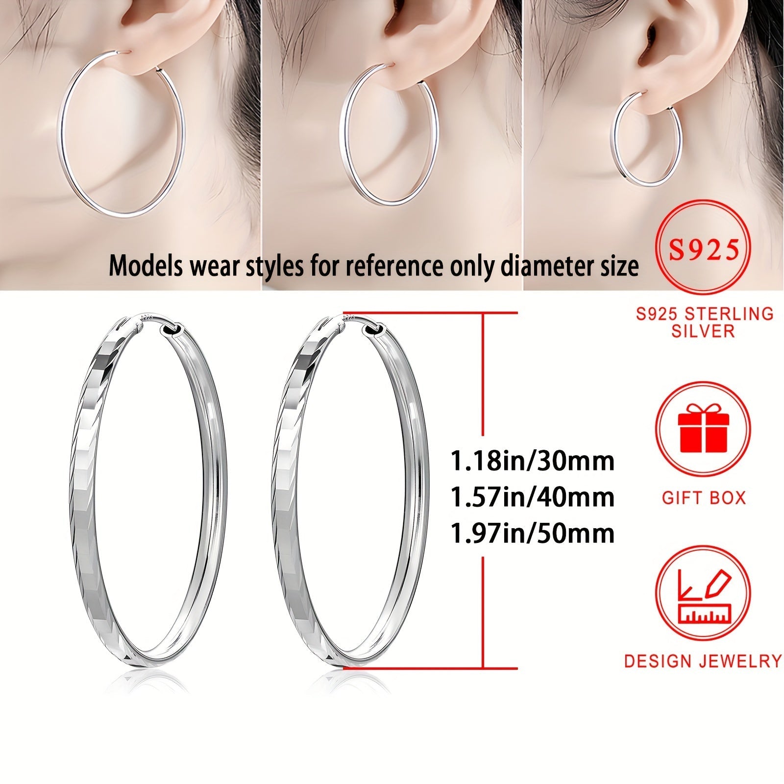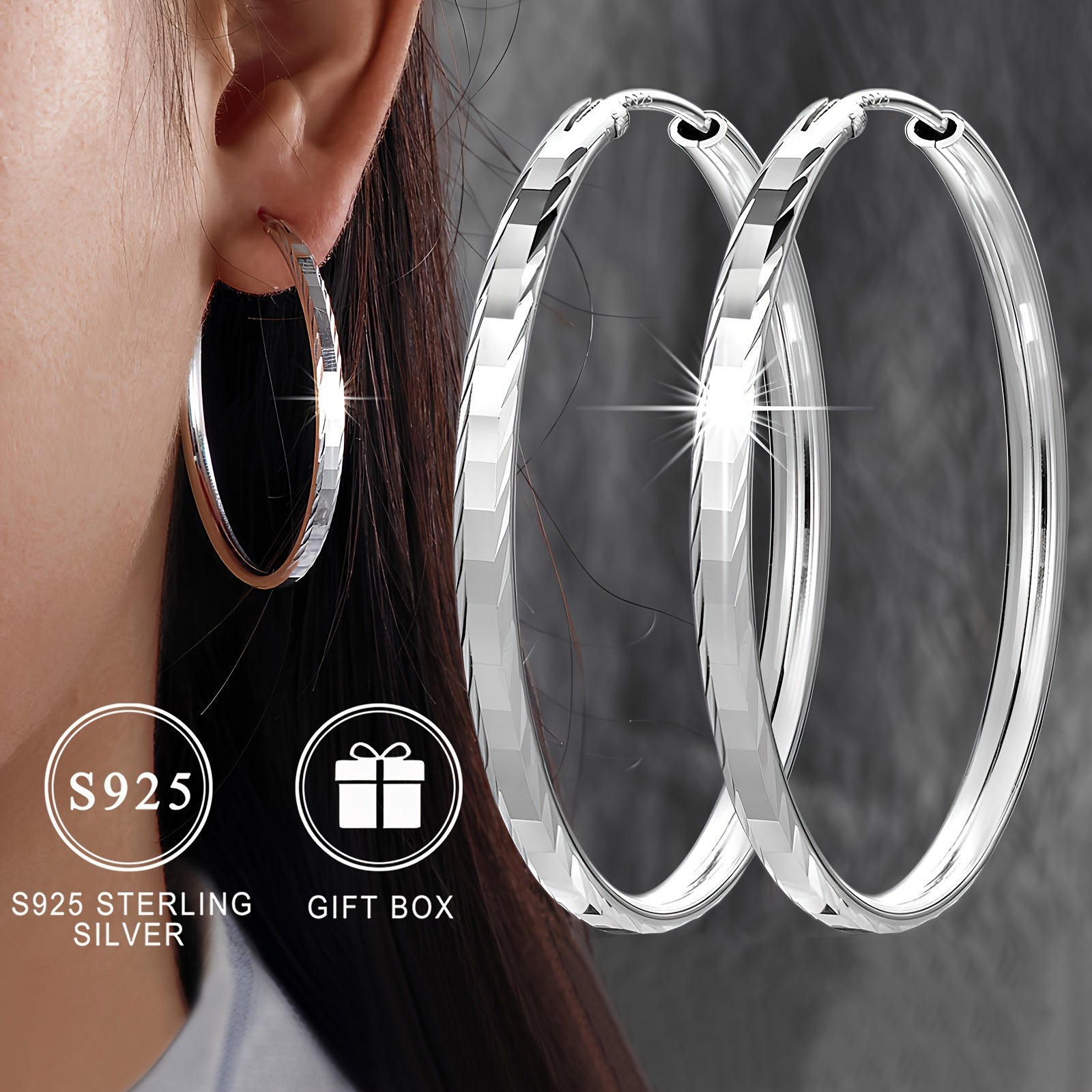 925 Sterling Silver Gipoallergenik Silli Doira Halqa Sirg'alar, Nafis va Jozibador Usul, Ayollar uchun mukammal, Sovg'a Qutisi bilan birga keladi