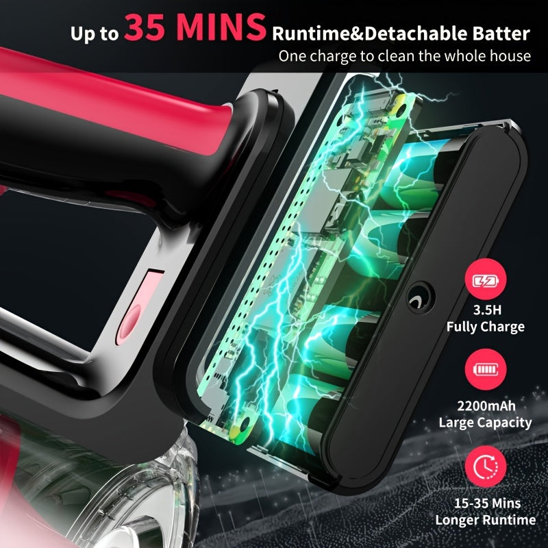 Qisqichbaqa uchun simsiz changyutgich 200W 25KPA tortish kuchi, uy hayvonlari tuklari uchun, pol va gilam uchun, engil