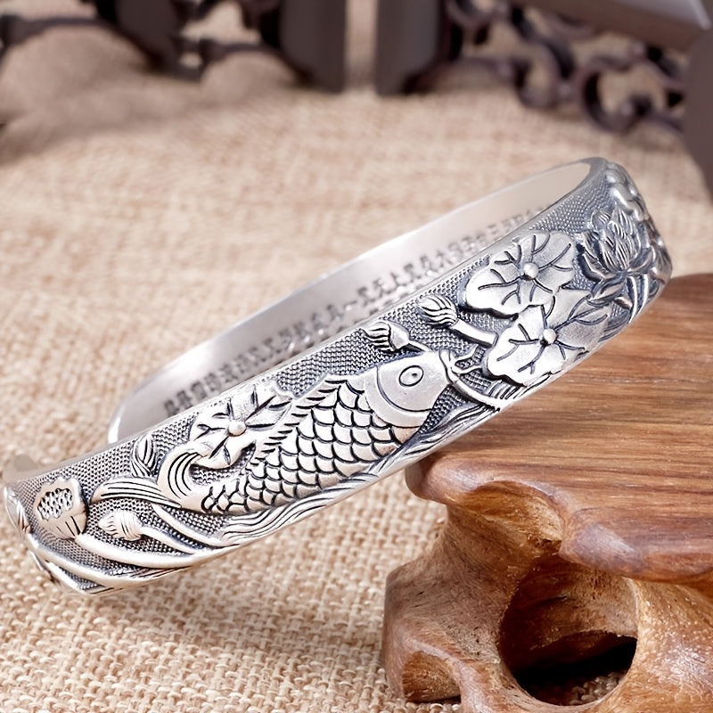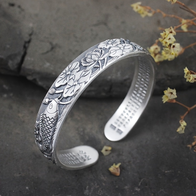 Bayram sovg'asi sifatida, bu S999 kumush bilaguzuk lotus baliq yurak naqshiga ega.