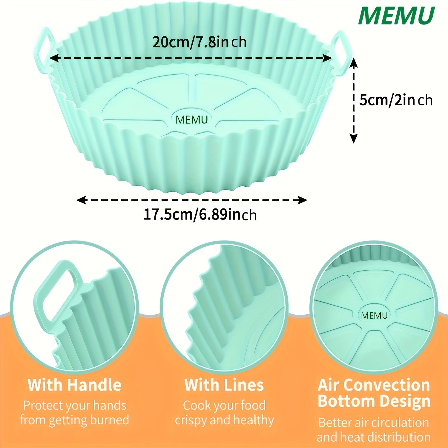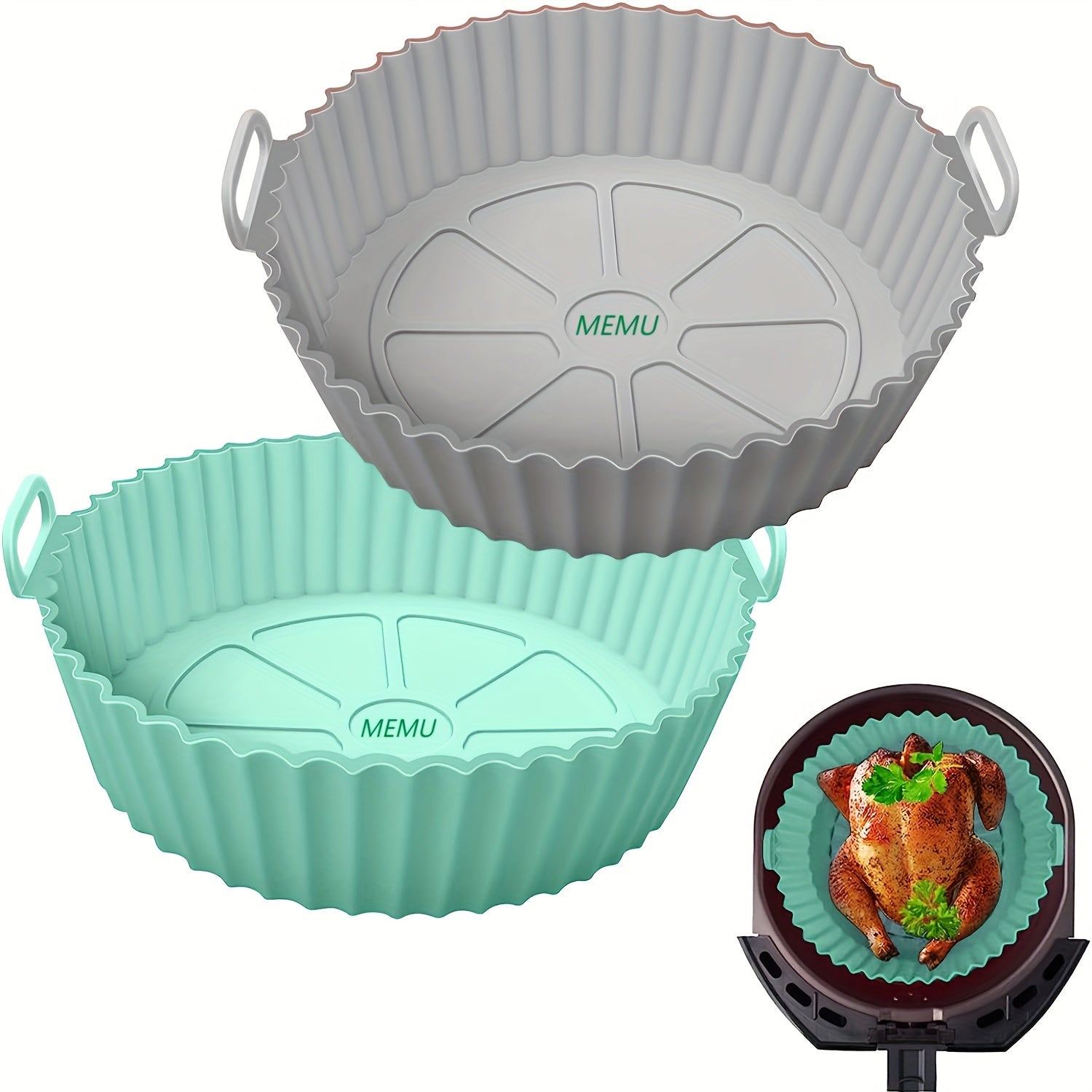 Qayta ishlatiladigan, idish yuvish mashinasida tozalash mumkin bo'lgan va pishirish uchun ham ishlatiladigan bir juft dumaloq silikon havo fritöz matlari. Ushbu ko'p qirrali matlar har qanday uy oshpazining muhim oshxona aksessuaridir.