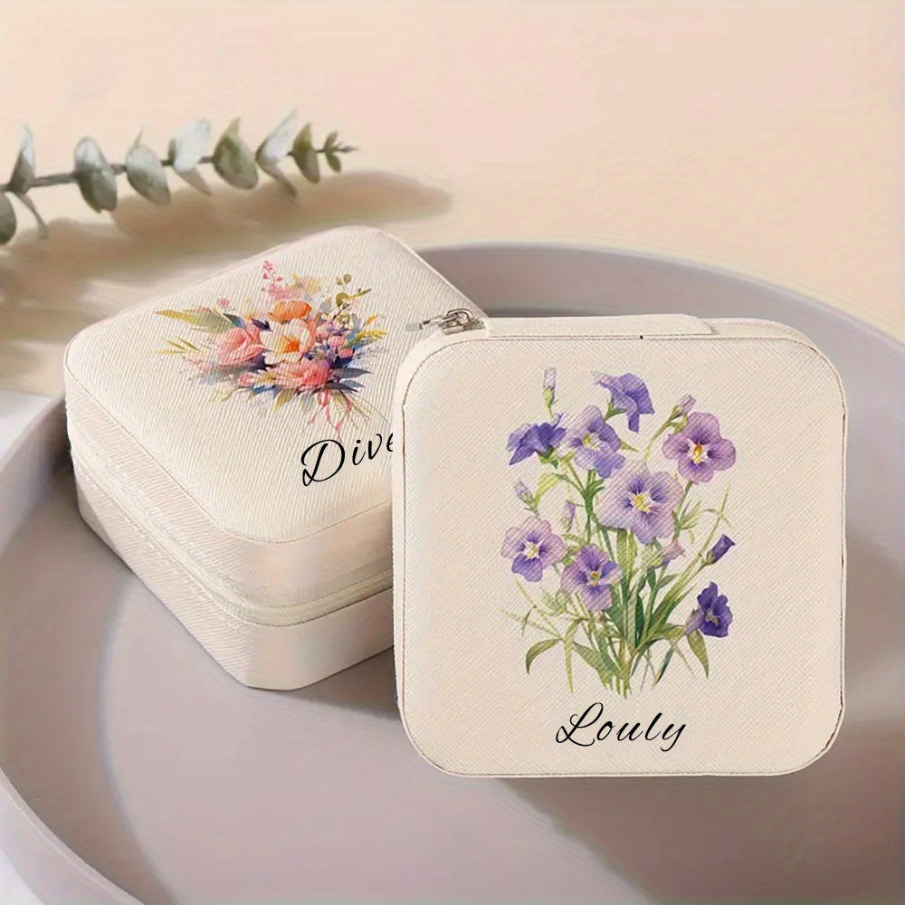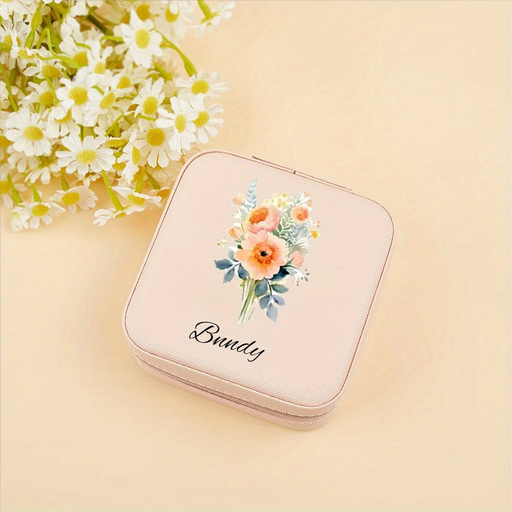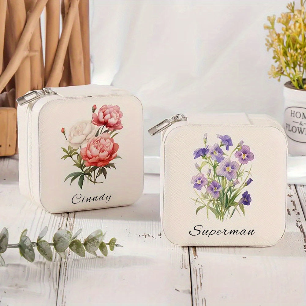 Ayollar uchun shaxsiylashtirilgan gulli zargarlik qutisi, PU charm, uzuk, sirg‘a va taqinchoq tashkilotchisi, sovg‘a