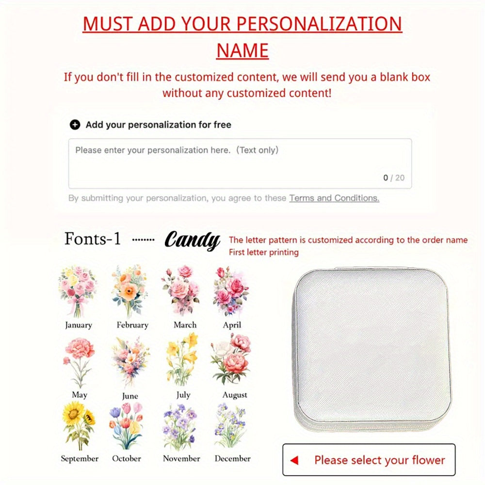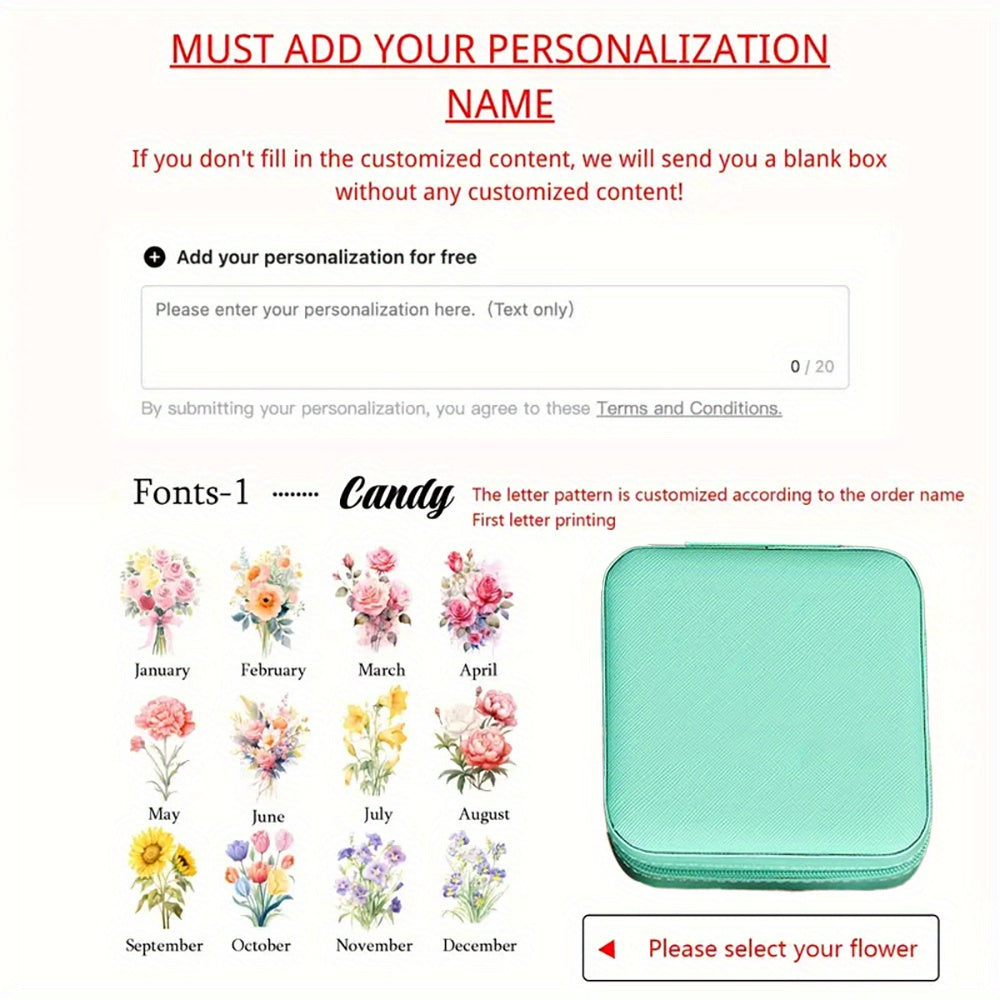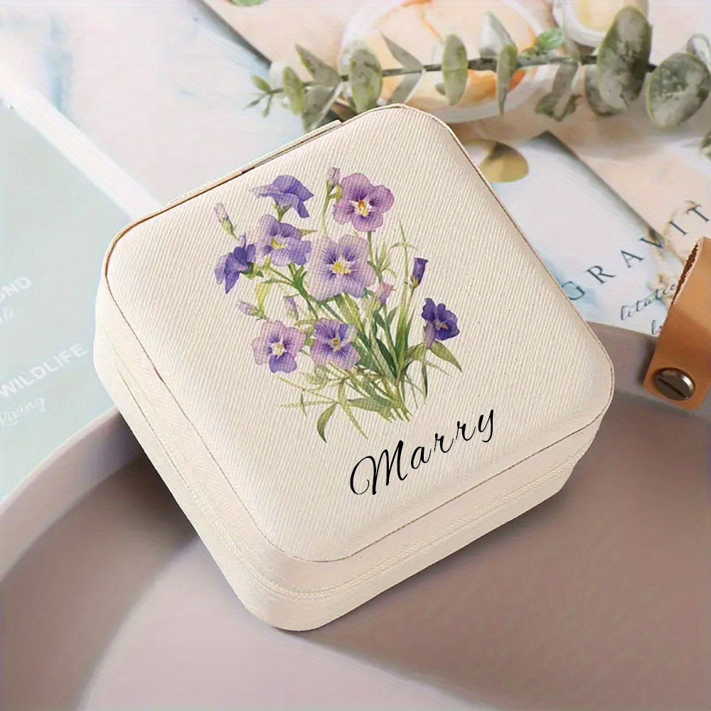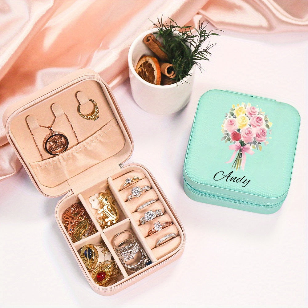 Ayollar uchun shaxsiylashtirilgan gulli zargarlik qutisi, PU charm, uzuk, sirg‘a va taqinchoq tashkilotchisi, sovg‘a