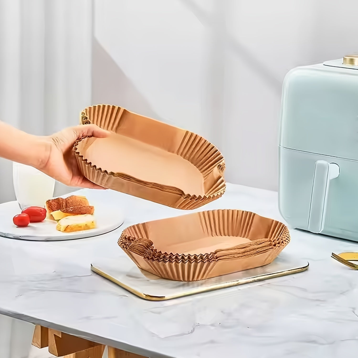 100 ta yopishmaydigan, bir foydalanishlik havo fritöz uchun qog'oz, yog'ga chidamli pergament qog'oz