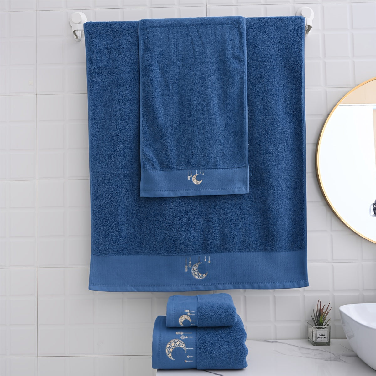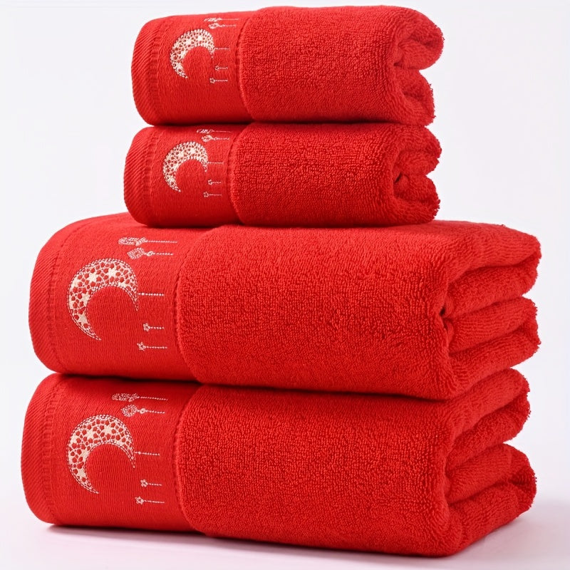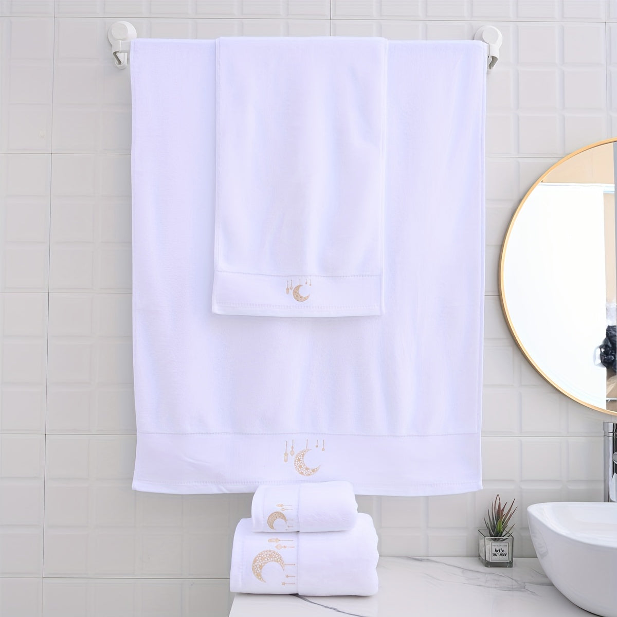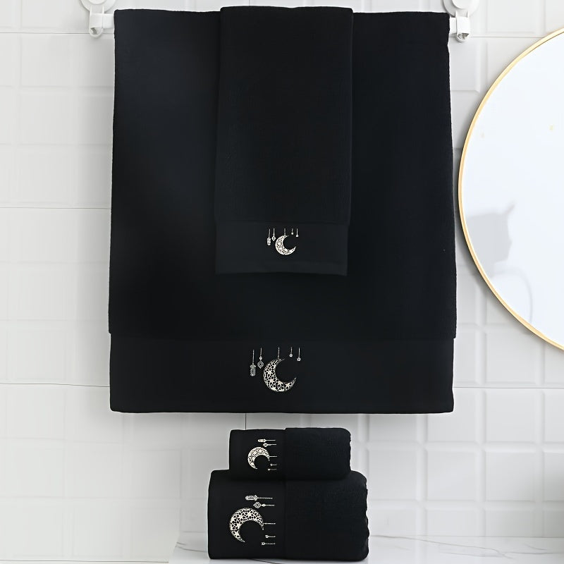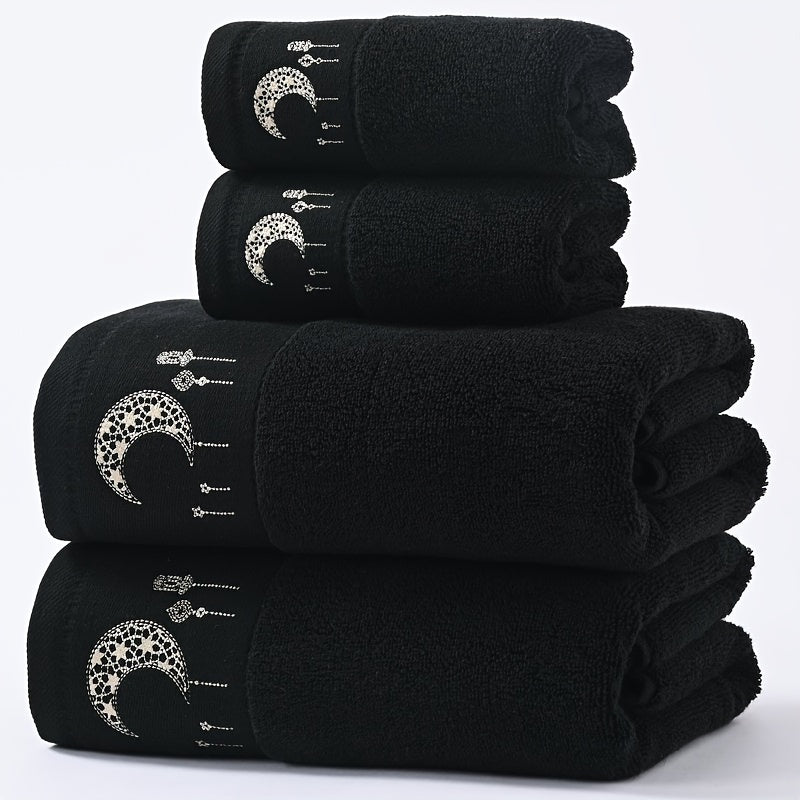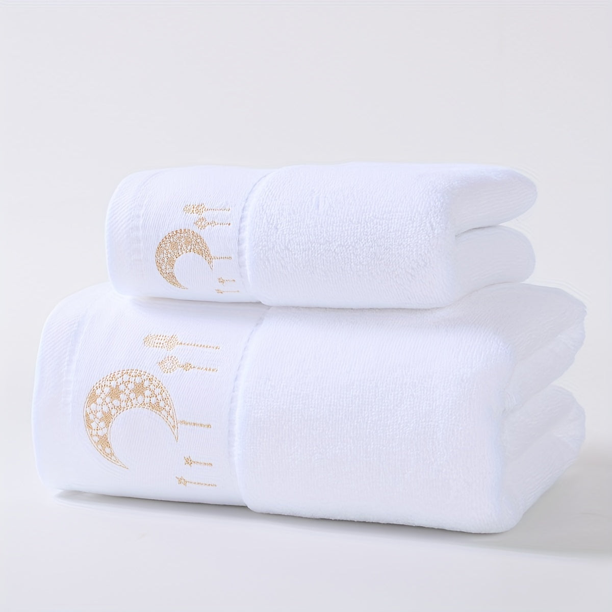 2 ta toza paxta velur sochiq to'plami, yulduz va oy tikuvlari bilan, o'lchamlari 34*75 sm va 70*140 sm. Juftliklar uchun 14-fevral sovg'asi sifatida yoki umumiy uyda foydalanish uchun mukammal. Bir yuvish sochiq va plyaj/hamom o'ralishi kiritilgan.