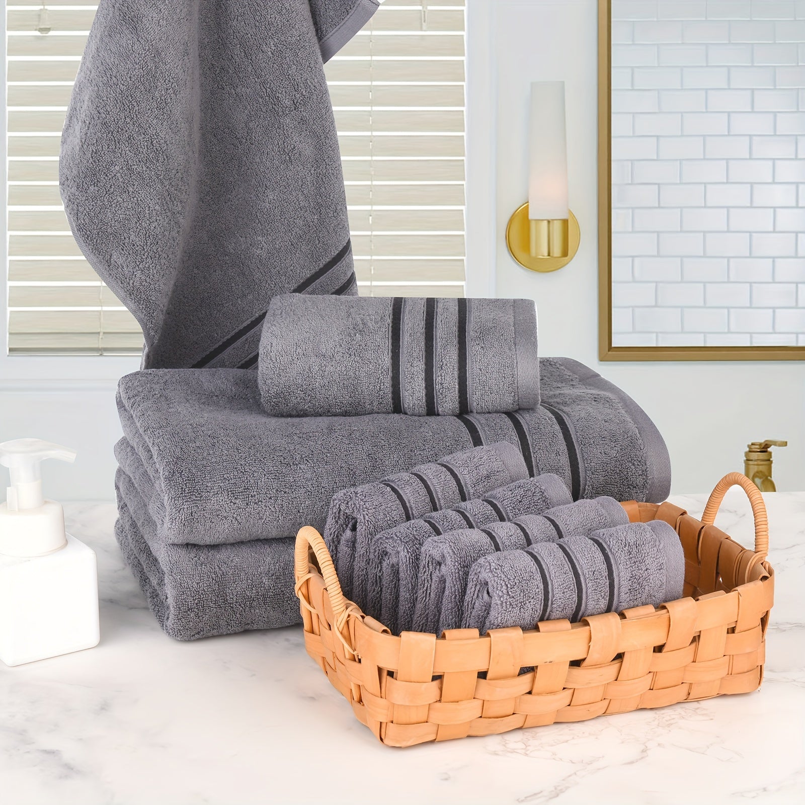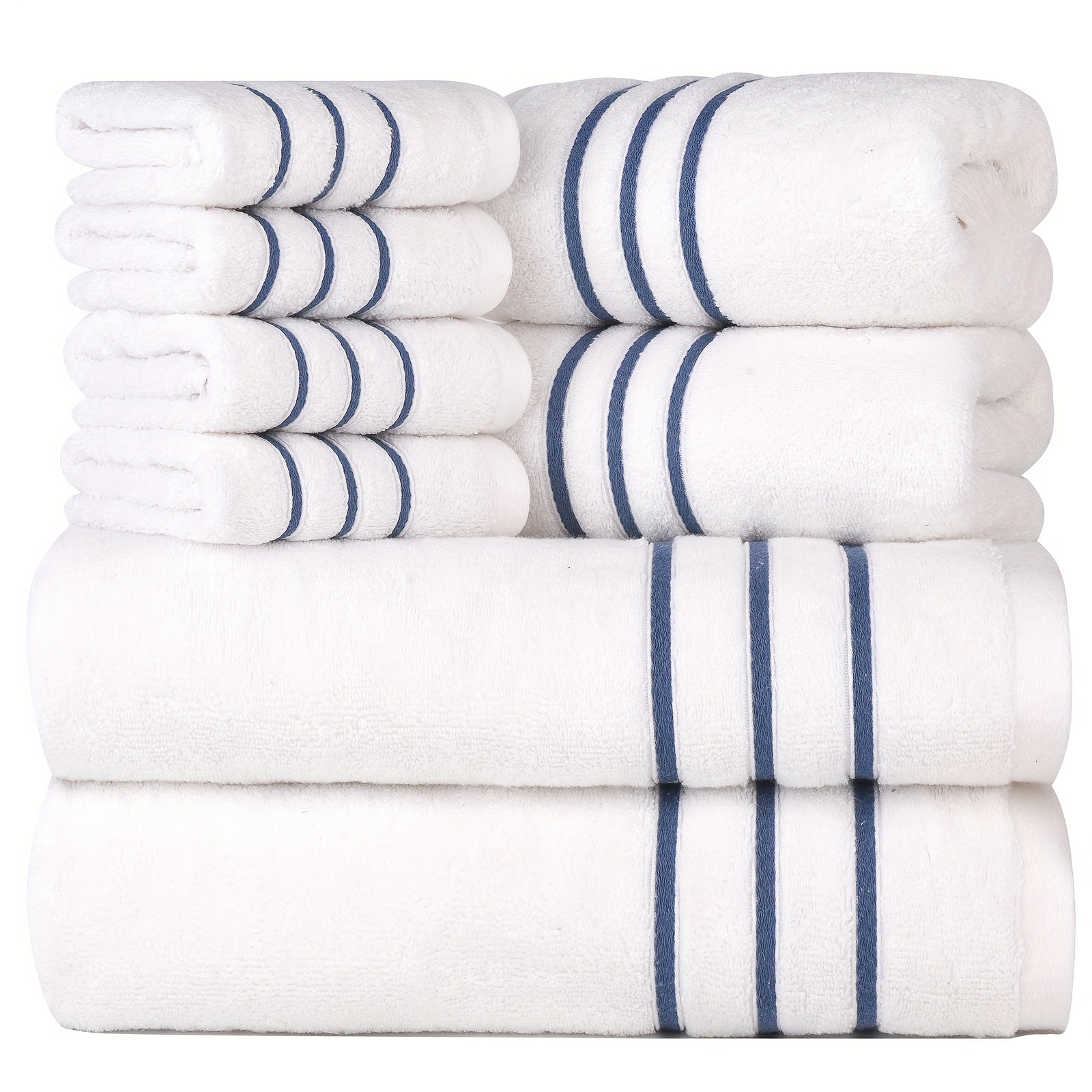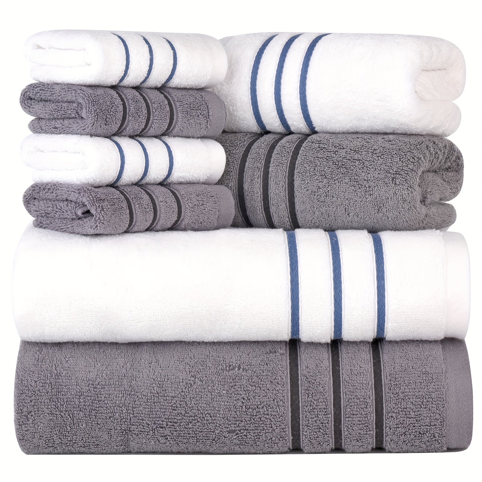 8 ta yumshoq, premium paxta sochiq to'plami, turli o'lchamlarda, tez quriydigan va pufak, ko'p rangli. 2 ta hammom sochiqi, 2 ta qo'l sochiqi va 4 ta yuvish sochiqni o'z ichiga oladi. Mukammal hammom aksessuarlari.