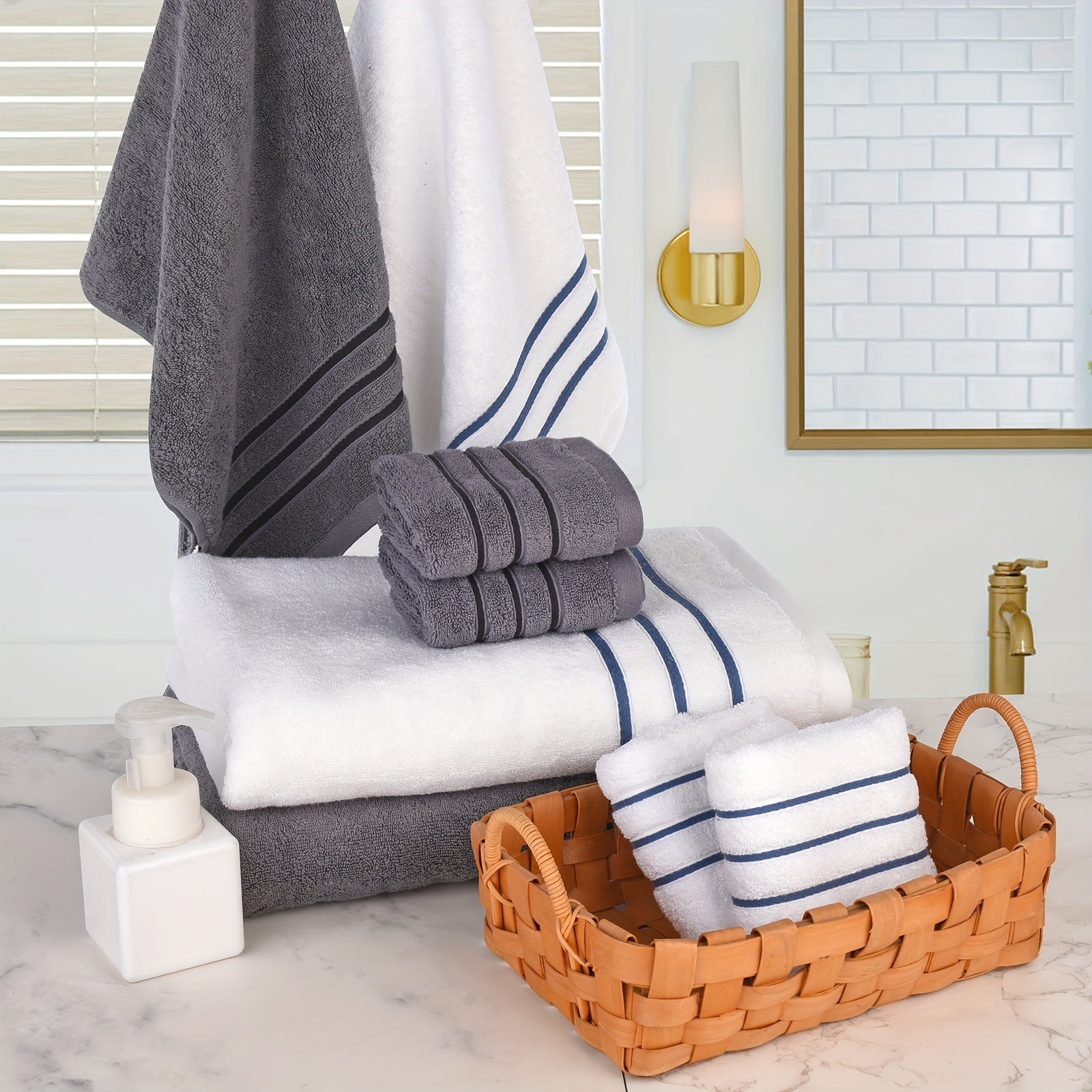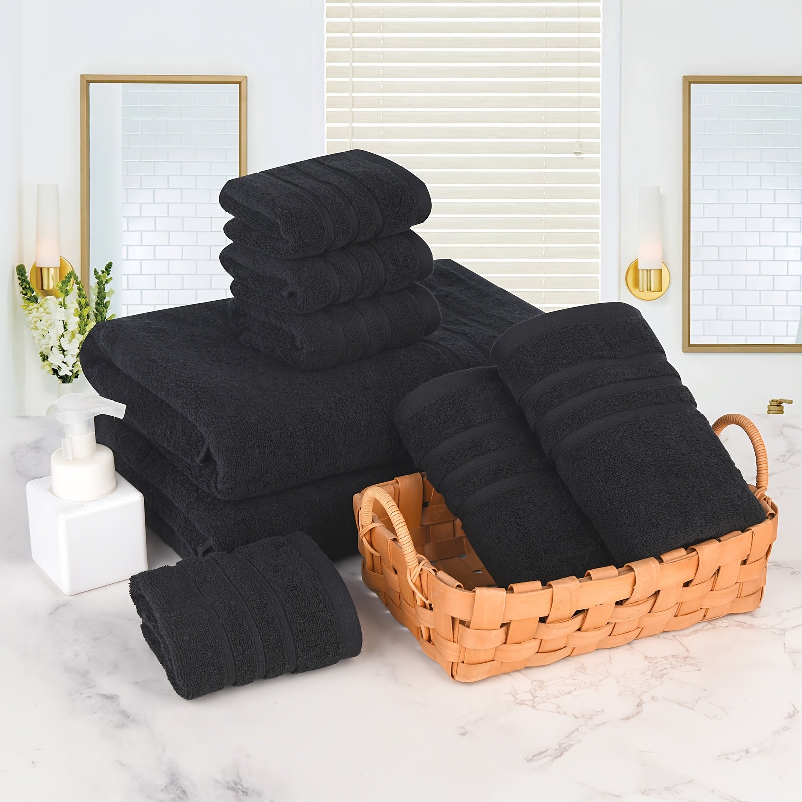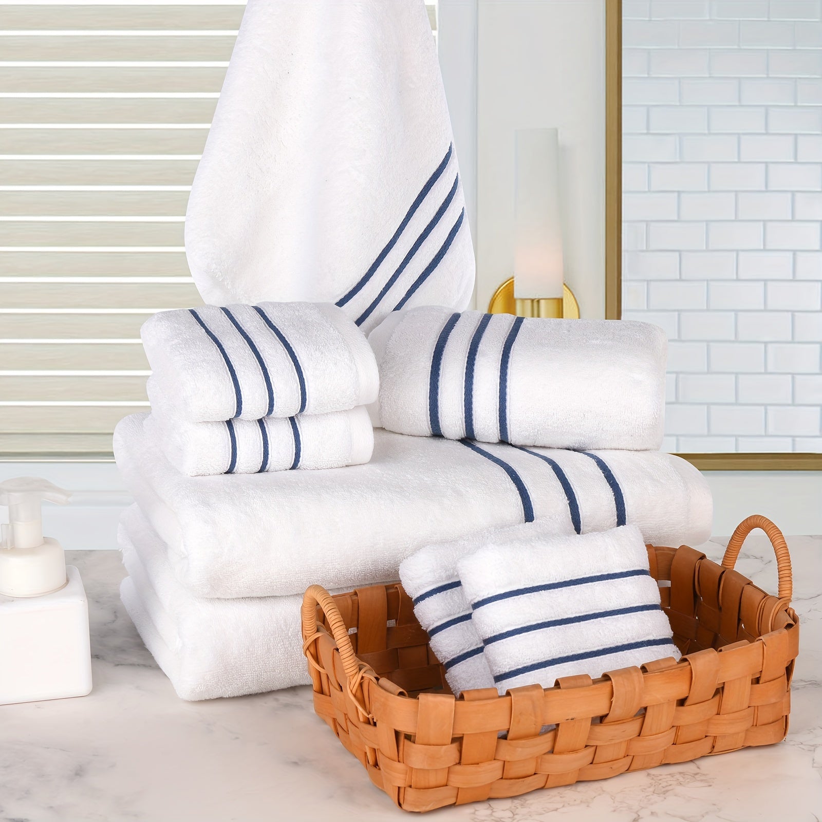 8 ta yumshoq, premium paxta sochiq to'plami, turli o'lchamlarda, tez quriydigan va pufak, ko'p rangli. 2 ta hammom sochiqi, 2 ta qo'l sochiqi va 4 ta yuvish sochiqni o'z ichiga oladi. Mukammal hammom aksessuarlari.