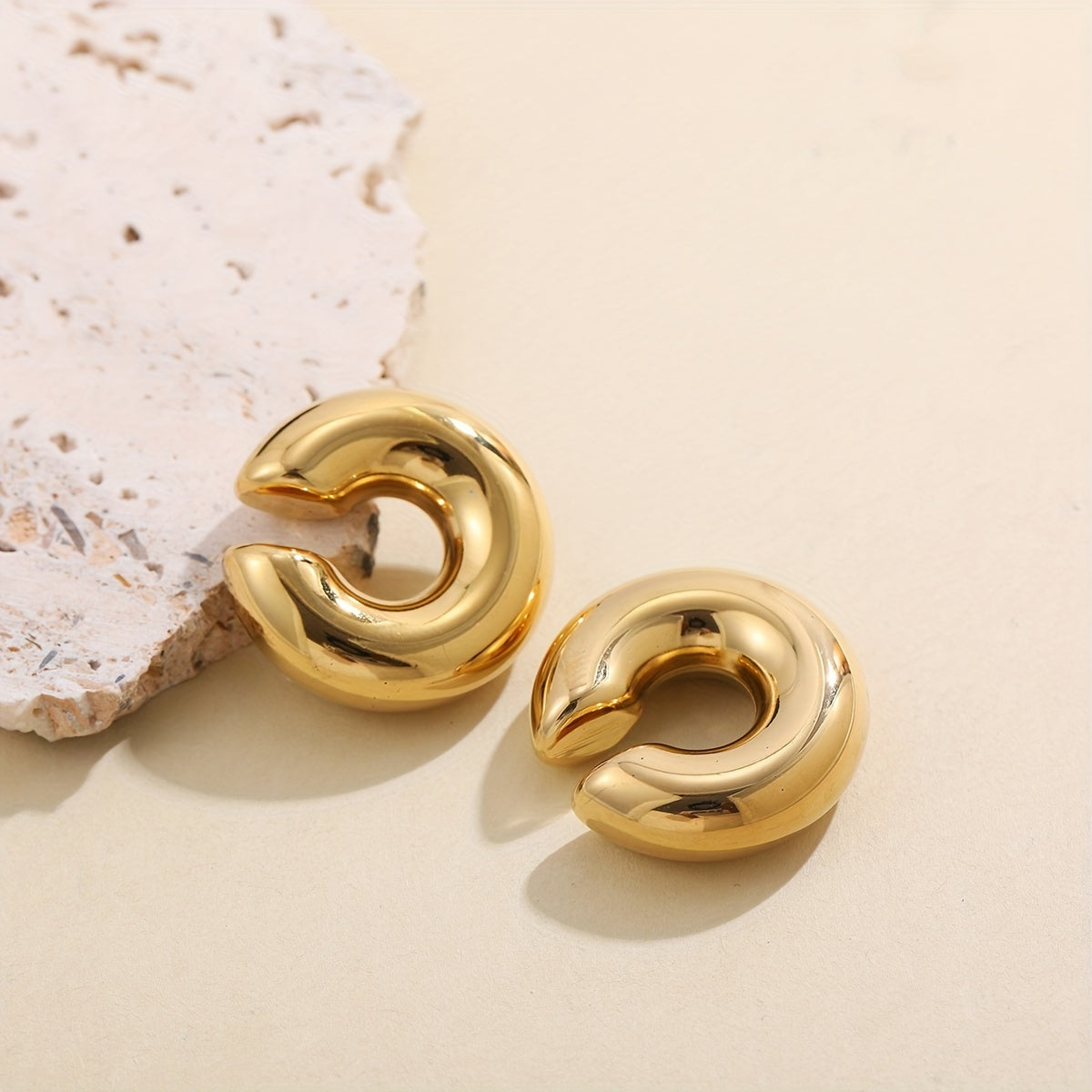 Zarif va zamonaviy zanglamas po'latdan yasalgan halqa sirg'alar to'plami, bo'sh C-shakl dizayni bilan. Kundalik kiyish, ta'til va Ramazon bayrami mavsumi uchun mukammal. Har mavsumda mos va ko'p qirrali.