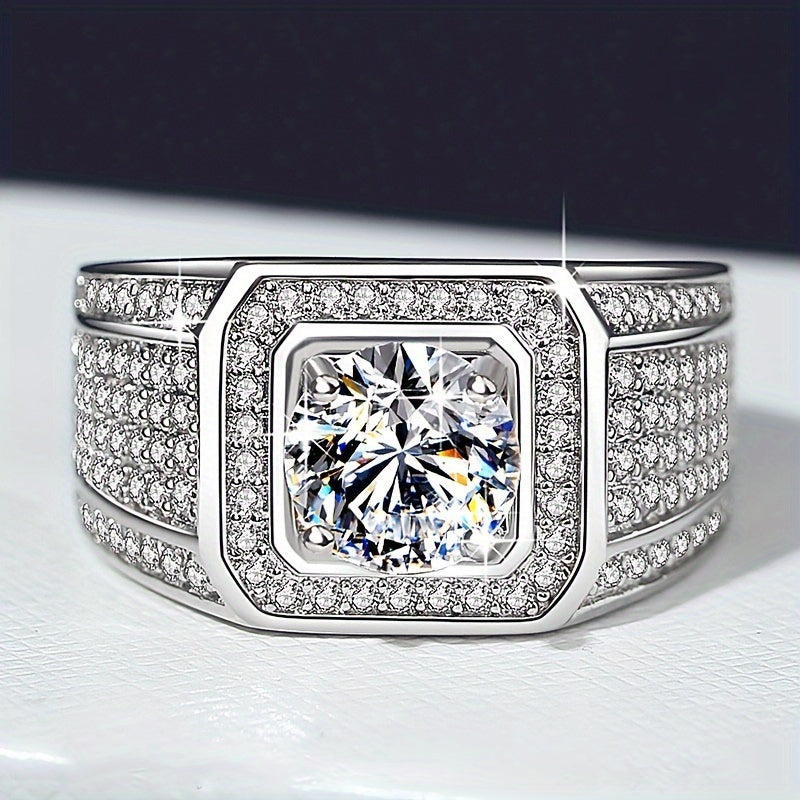 E'tiborli erkaklar uzugi, ehtiyotkorlik va aniqlik bilan ishlab chiqarilgan, hashamatli 925 sterling kumushga o'rnatilgan porloq zirkoniya bilan bezatilgan. Ushbu bayonot asari taxminan 12.3 gramm og'irlikda bo'lib, nafislik va hukmronlikni namoyon etadi.