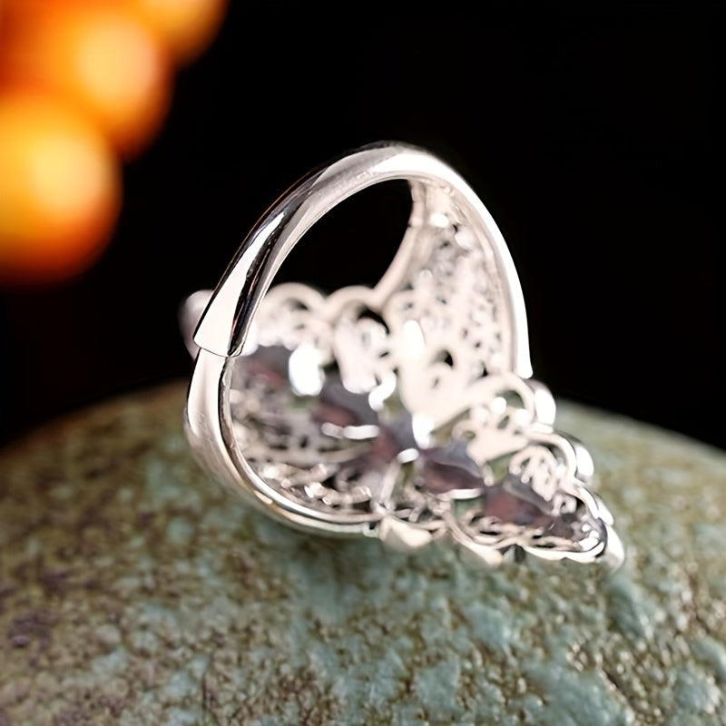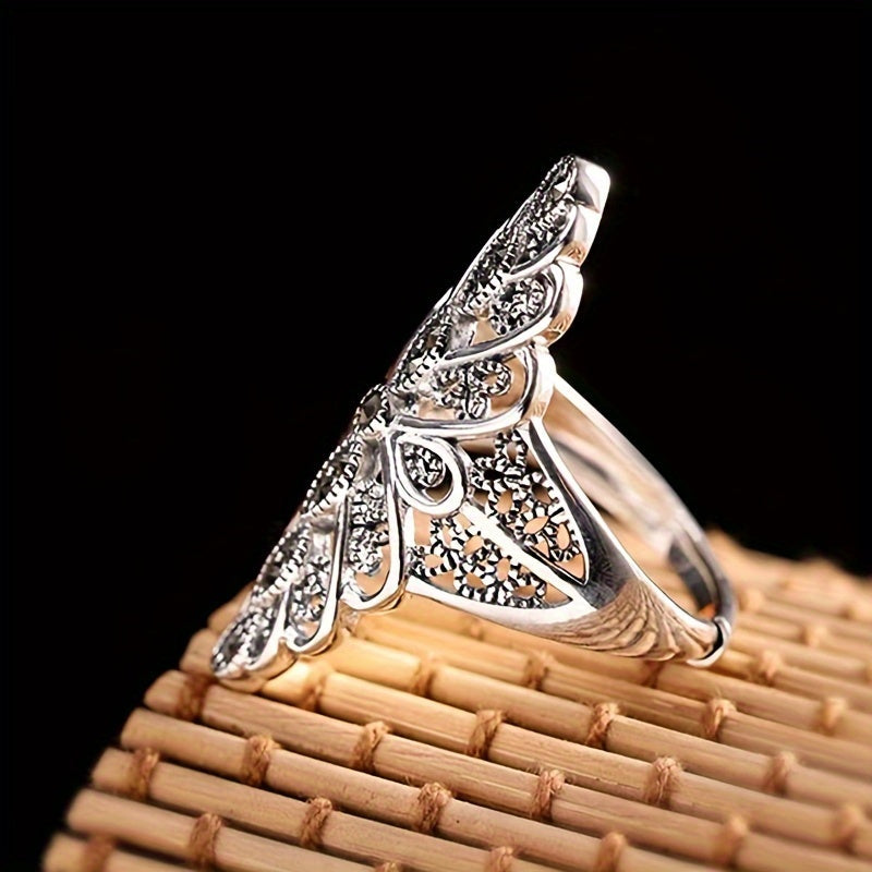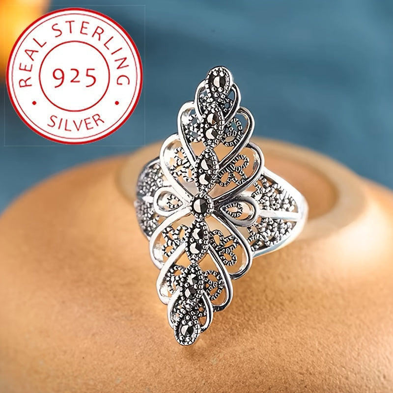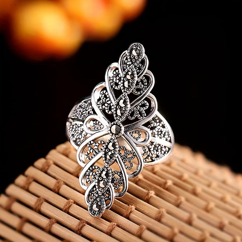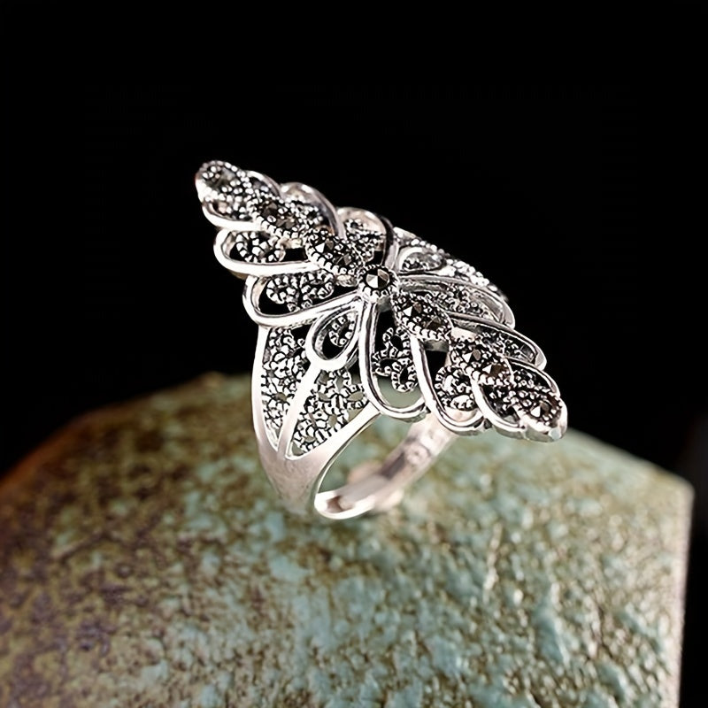 Haqiqatanan noyob sovg'a, bu 6.8 grammli retro bo'sh yurak shaklidagi uzuk 925 kumushdan yasalgan bo'lib, qora zirkoniya bilan o'ziga xos oval to'rt qopqoqli joylashuvga ega. Nozik zargarlikni qadrlaydigan ayollar va erkaklar uchun mukammal.