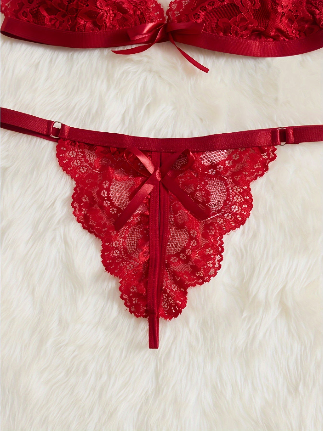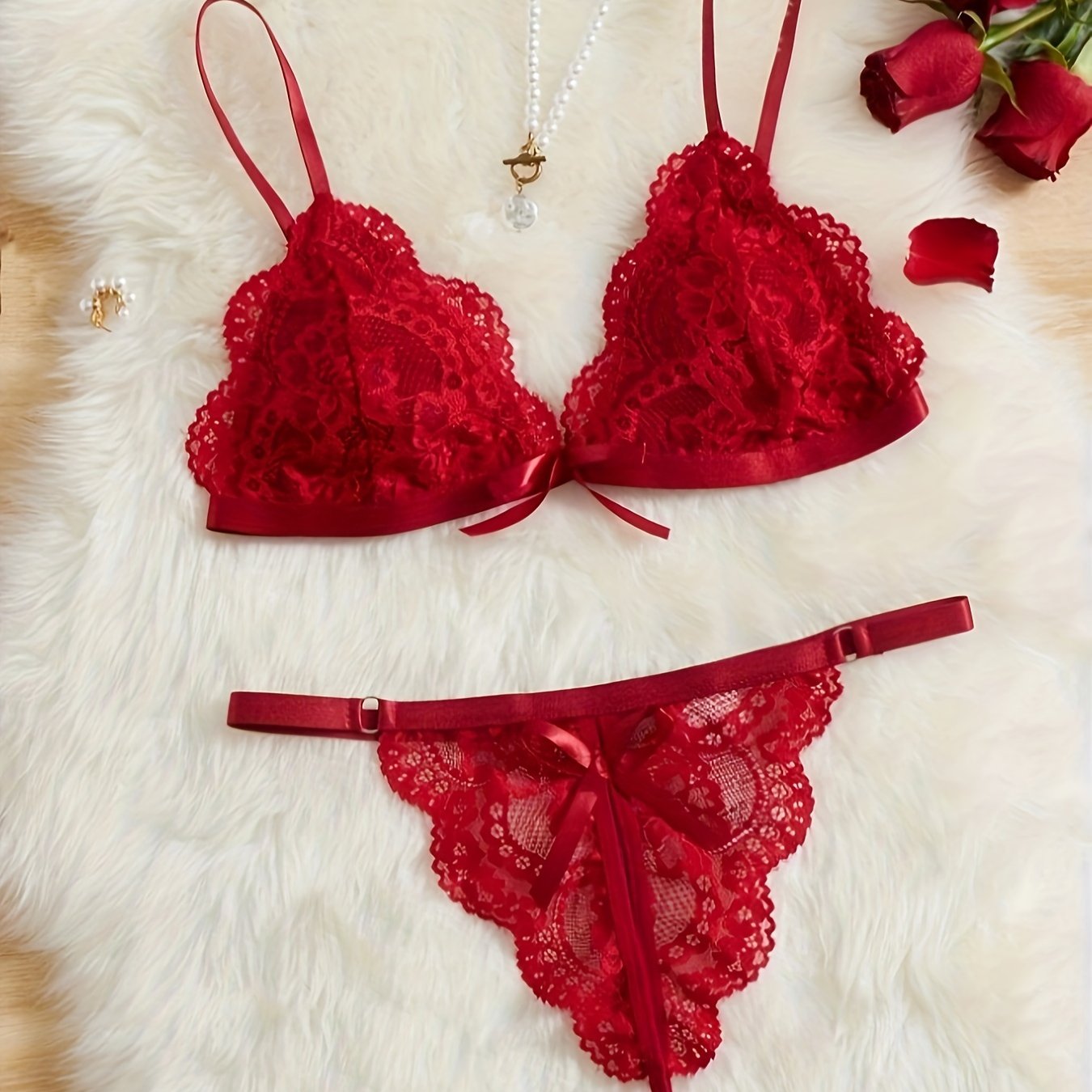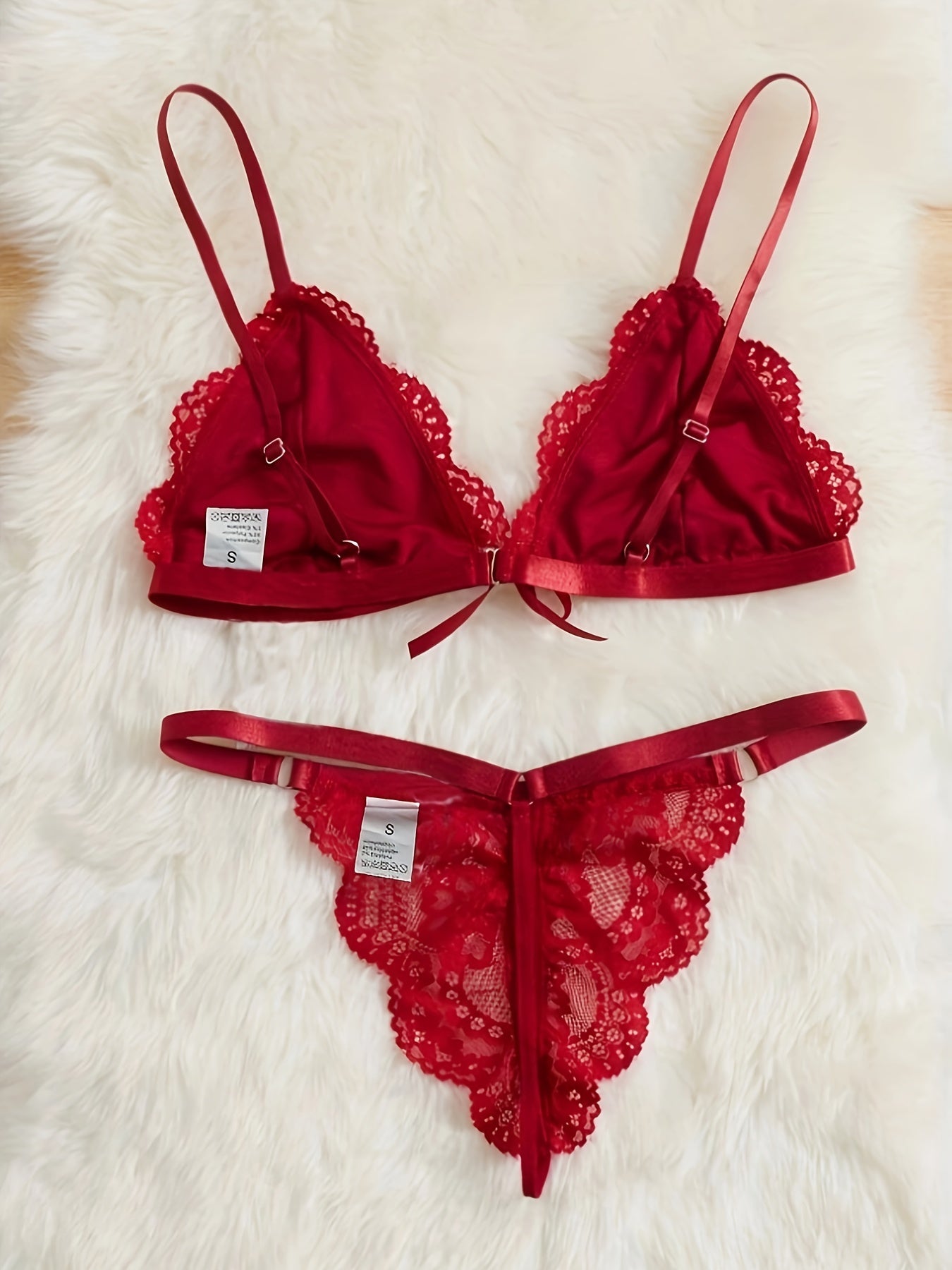 Ayollar uchun toza dantelli ichki kiyim to'plami, bo'sh dizayn, ochiq qorin uslubi, jozibali bog'ich tafsiloti, shaffof bo'lmagan brassier, uchburchak ko'krak shakli va Y2K uslubi.