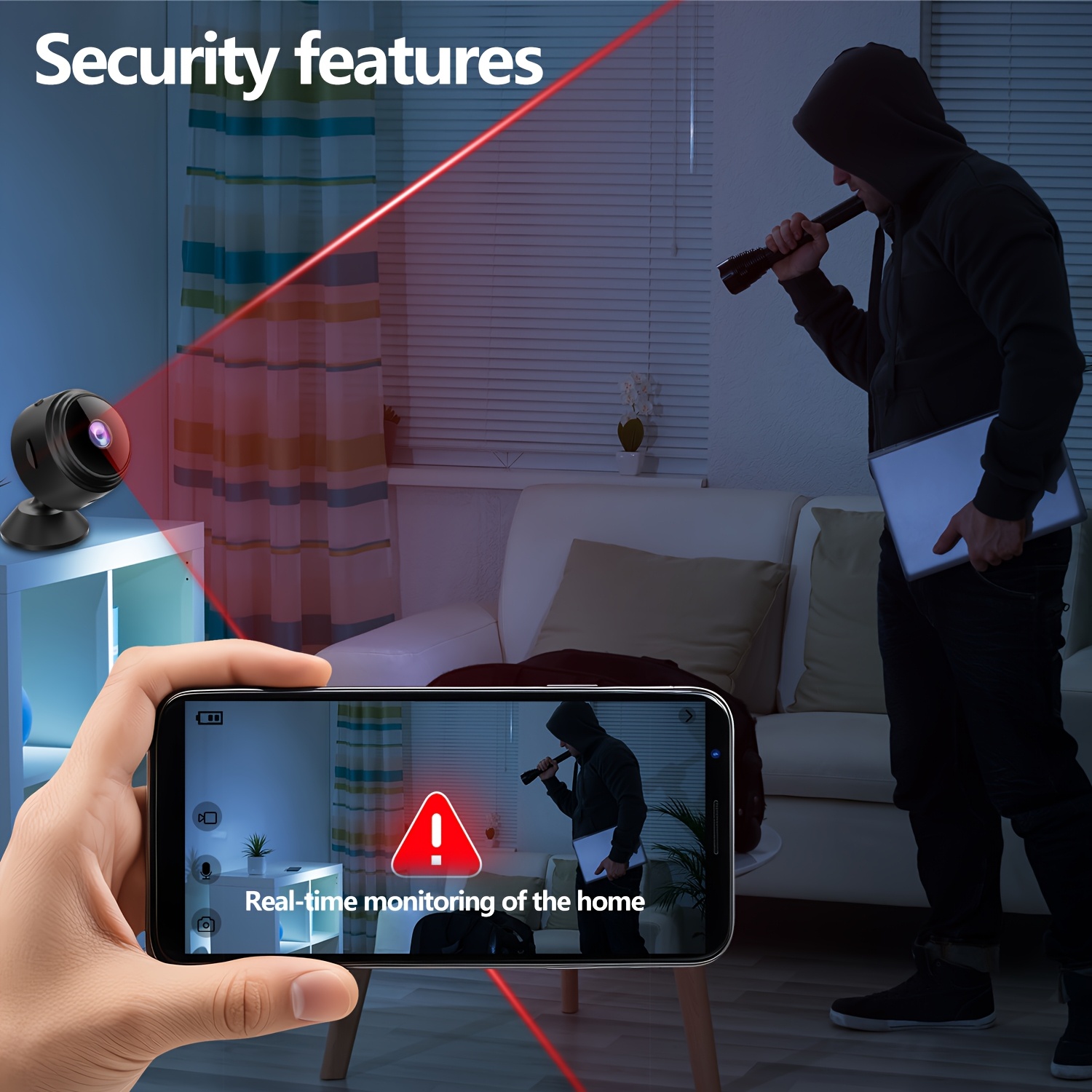 A9 WiFi Mini Xavfsizlik Kamerasi 480P HD, Kechki Ko'rinish, Harakatni Aniqlash Ogohlantirishlari, Qayta Zaryadlanadigan Batareya va USB Quvvat, Uy Monitoring uchun Qulay Ichki/Tashqi Kuzatuv.