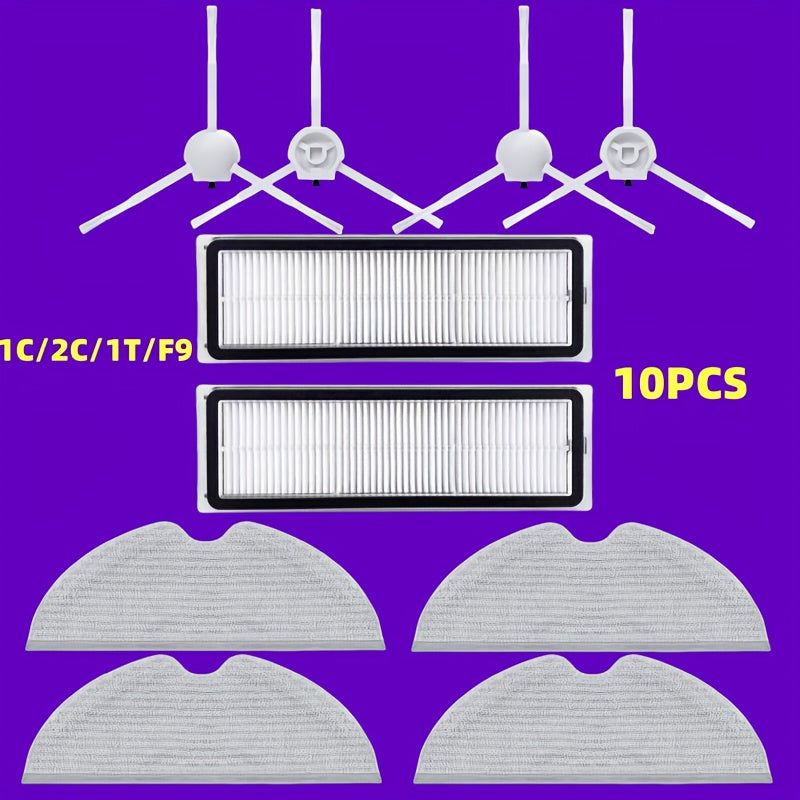 Xiaomi Mijia 1C/2C/1T/F9 robot tozalagichi uchun aksessuar to'plami, 4 ta yon cho'tka, 2 ta filtr va 4 ta mato o'z ichiga oladi. To'plamda jami 10 dona mavjud.