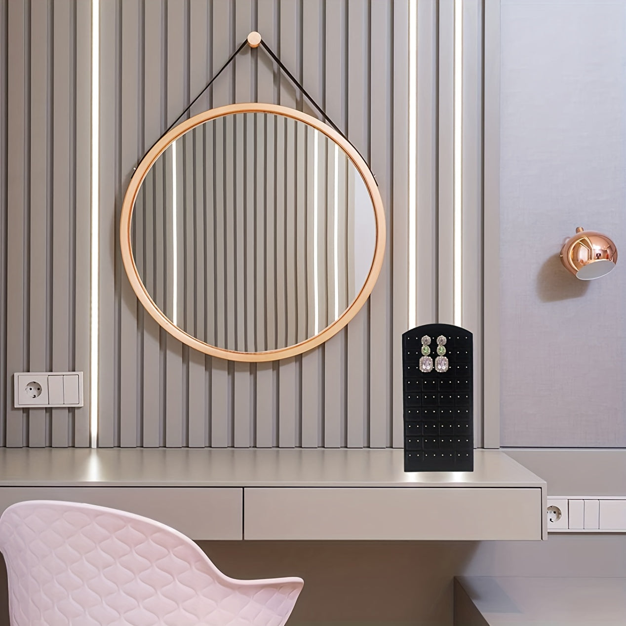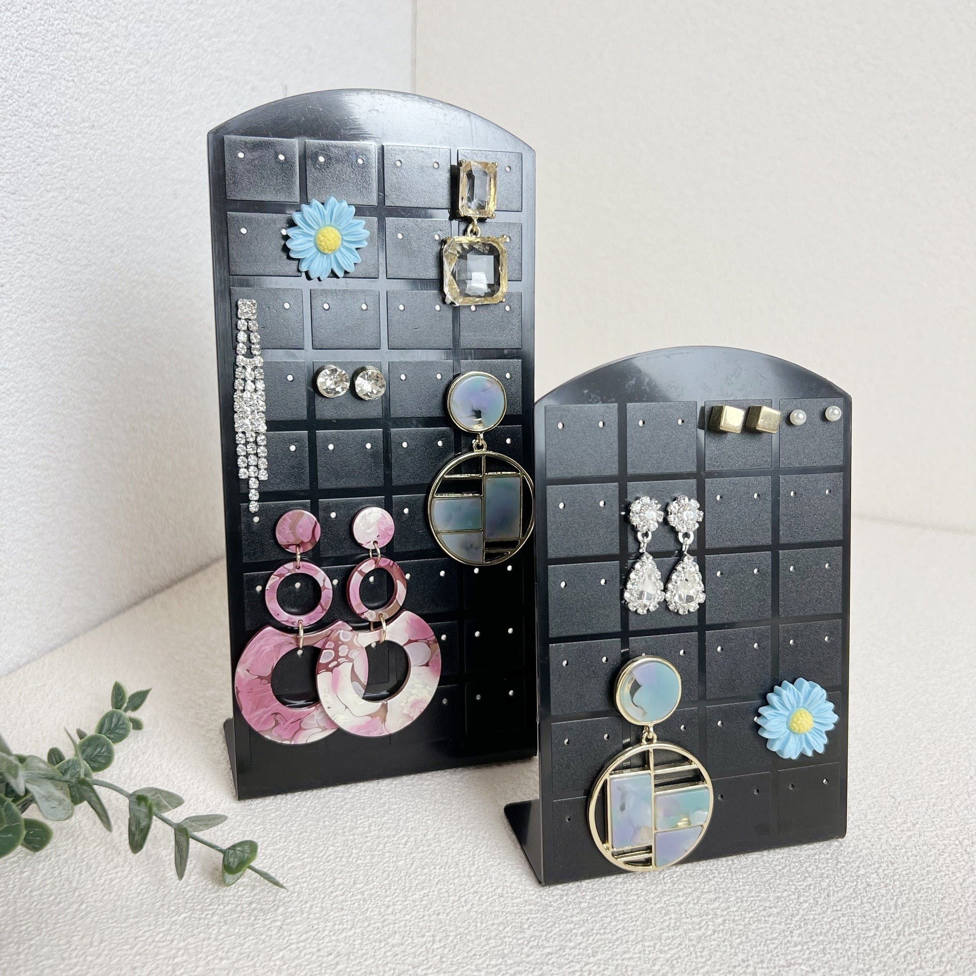 Akril zargarlik buyumlarini tashkil etuvchi, 72 ta quloq sirti teshikli saqlash qismi bilan ko'rsatkich