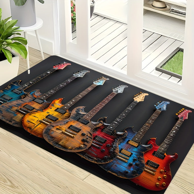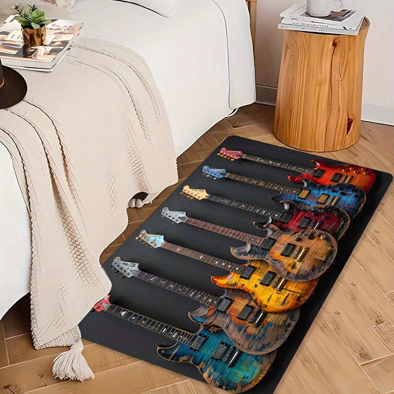 Yorqin Elektr gitar naqshli gilam 8mm qalinlikda, sirpanmaydigan, yuviladigan pol mato