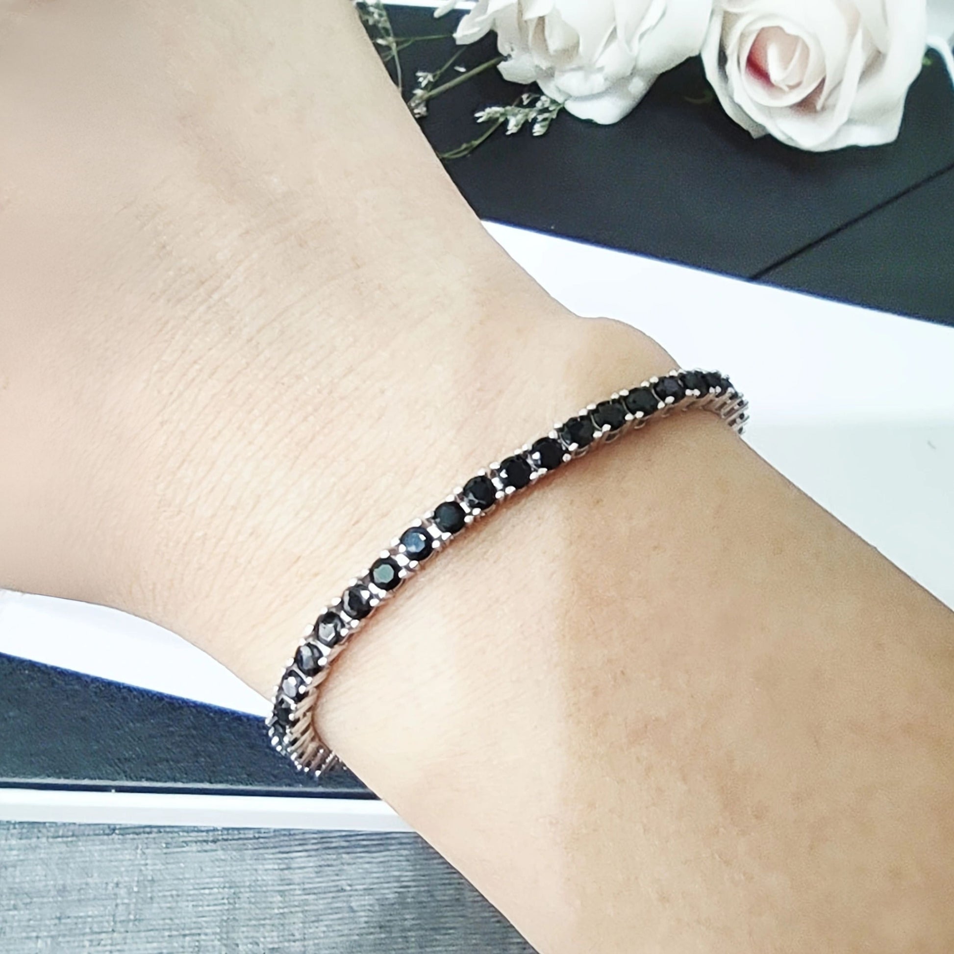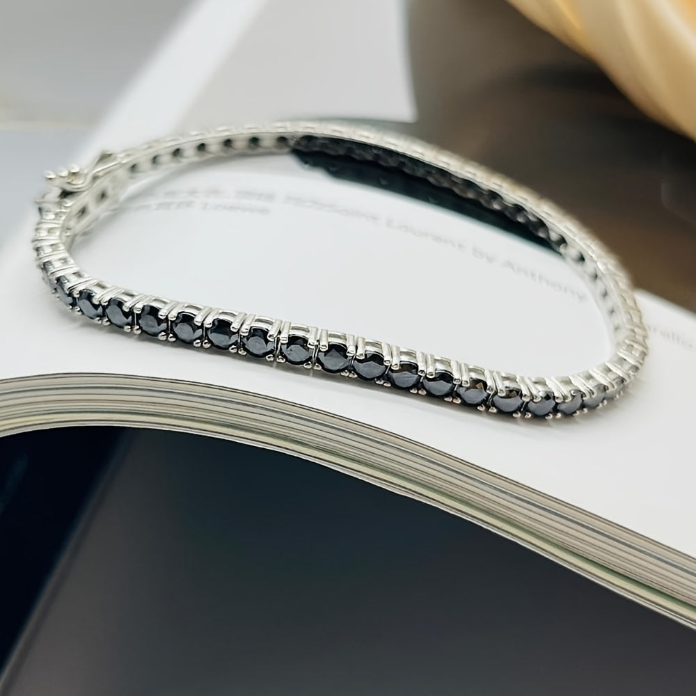 Kiyimingizga nafislik qo'shing, 1.0CT bitta toshli ajoyib S925 Sterling Silver Qora Moissanite Bilaguzuk bilan. Ushbu hashamatli moda aksessuar partiyalar va uchrashuvlar uchun mukammal, Halloween, Rojdestvo uchun ideal sovg'a.