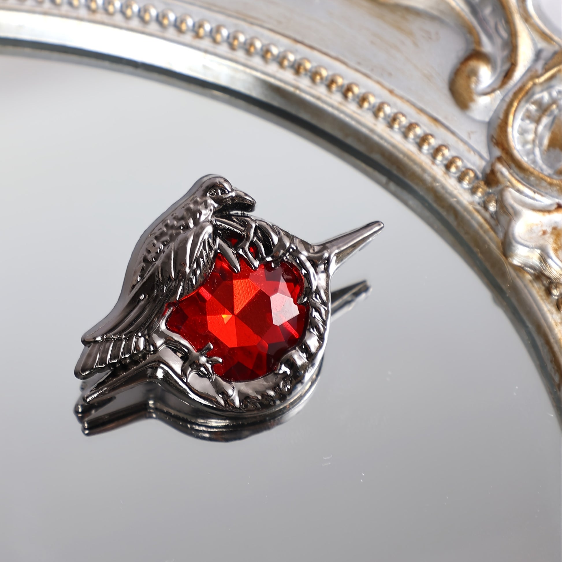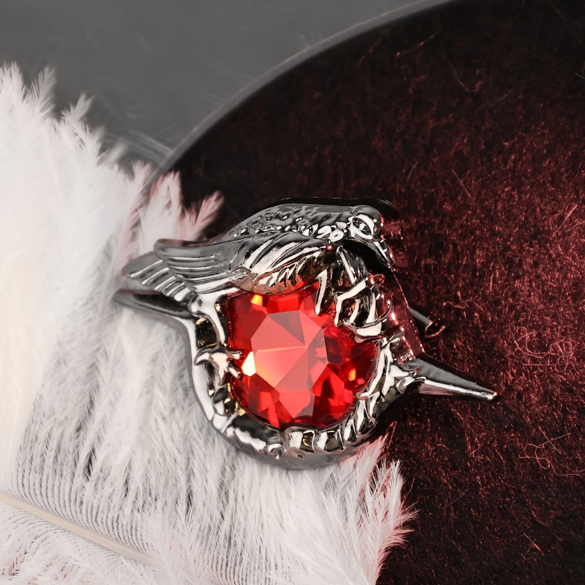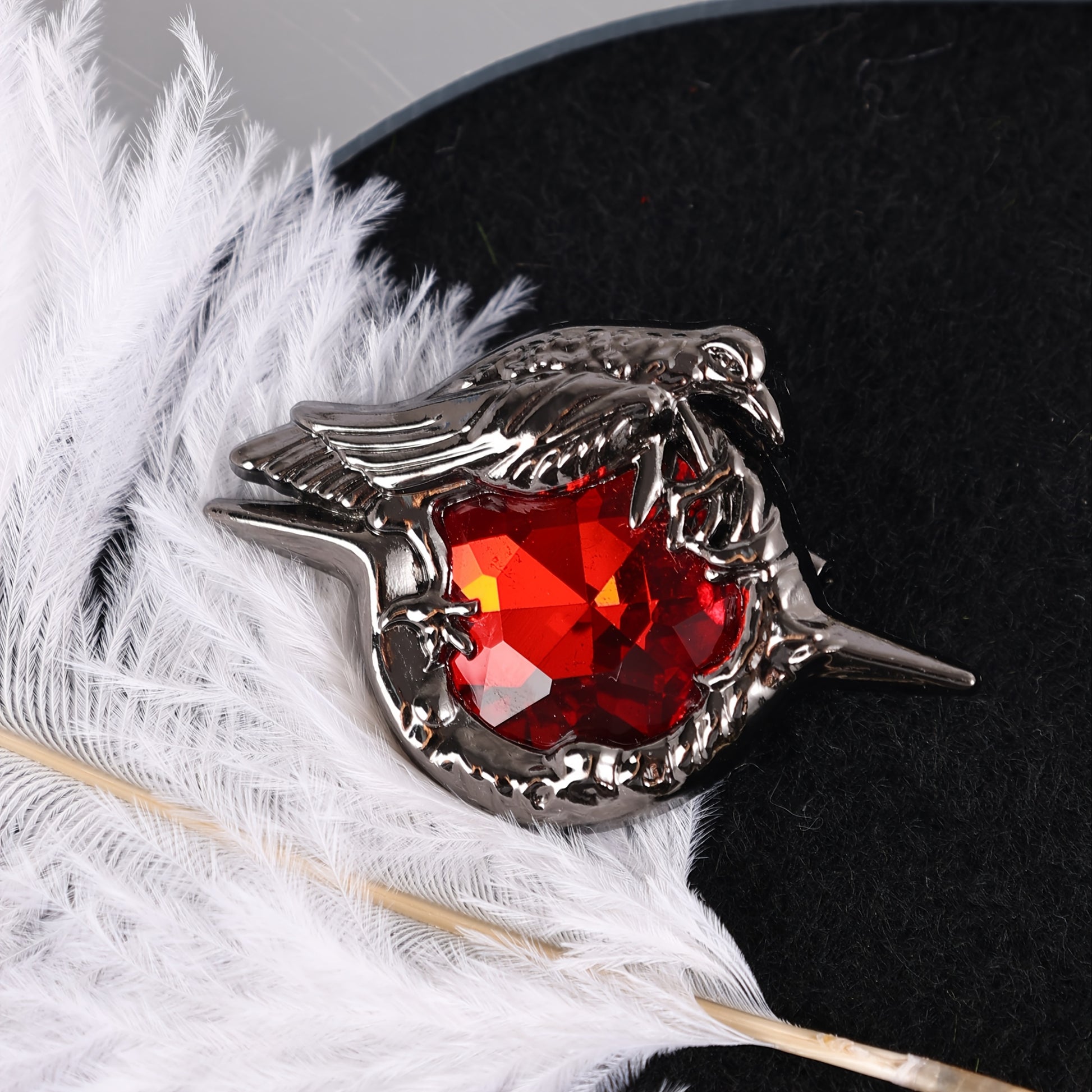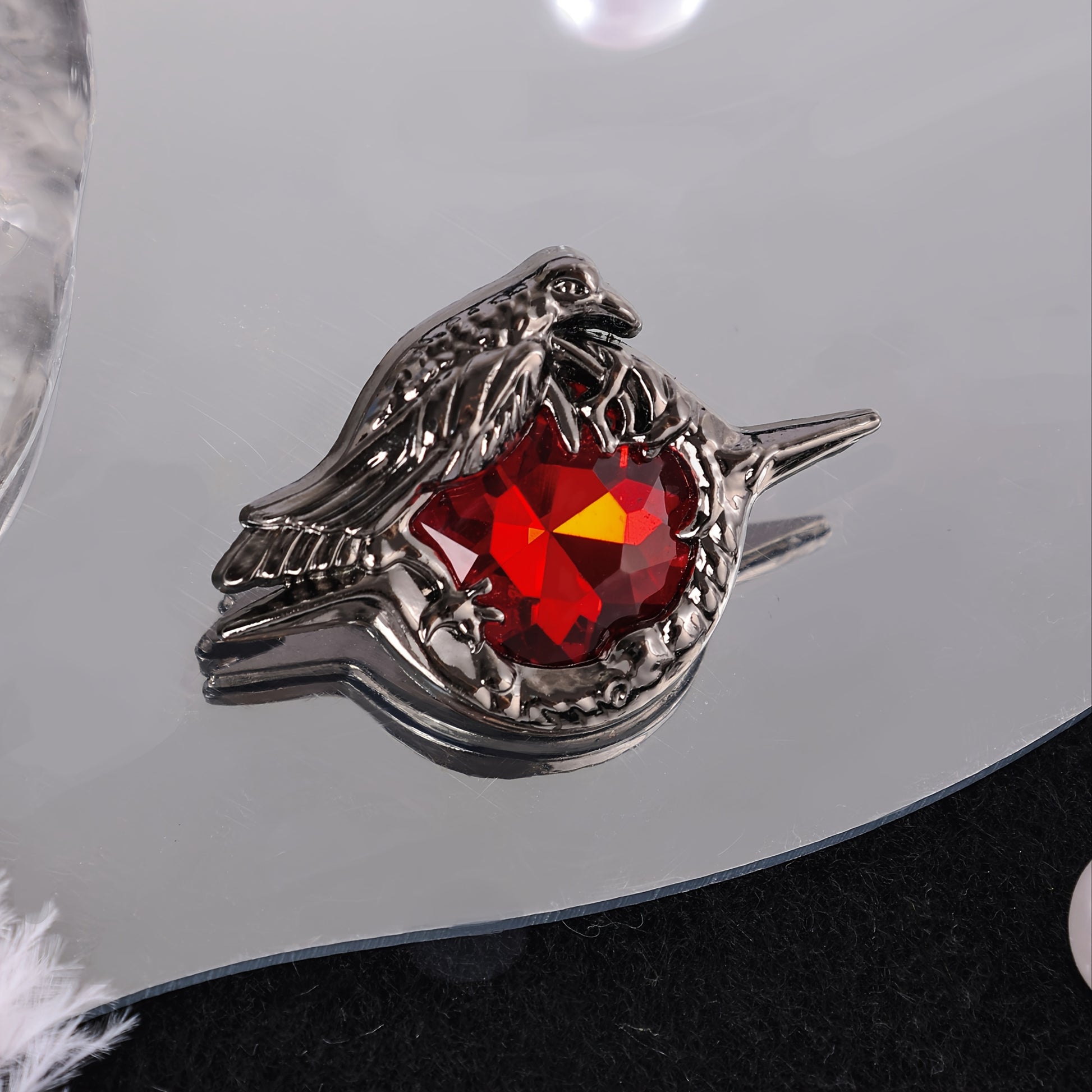 Bayramlar va sovg‘alar uchun Qotik Qarg‘a broshyasi, Qizil Zirconiya tosh bilan
