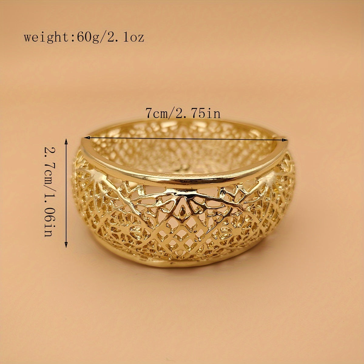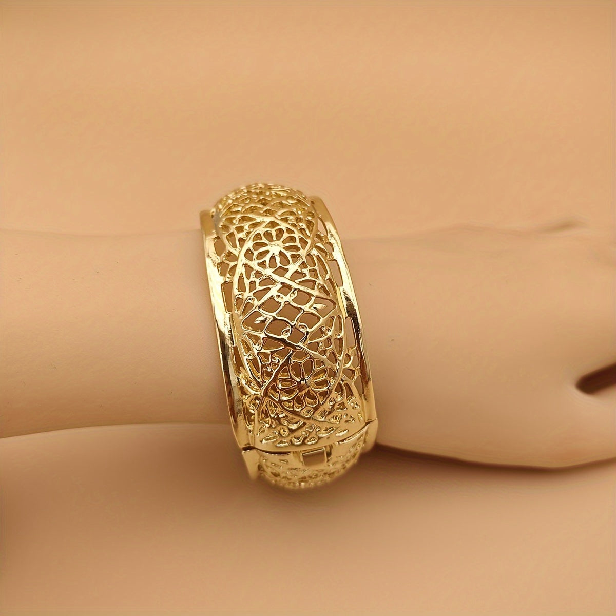 Ayollar uchun sozlanadigan bilaguzuk, murakkab kesilgan detallar bilan bezatilgan vintage oltin metall keng bilaguzuk - bayram ziyofatlari va tantanalar uchun mukammal.