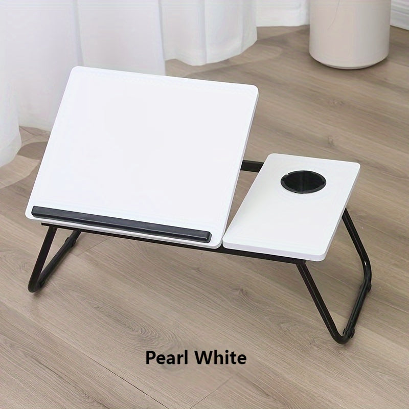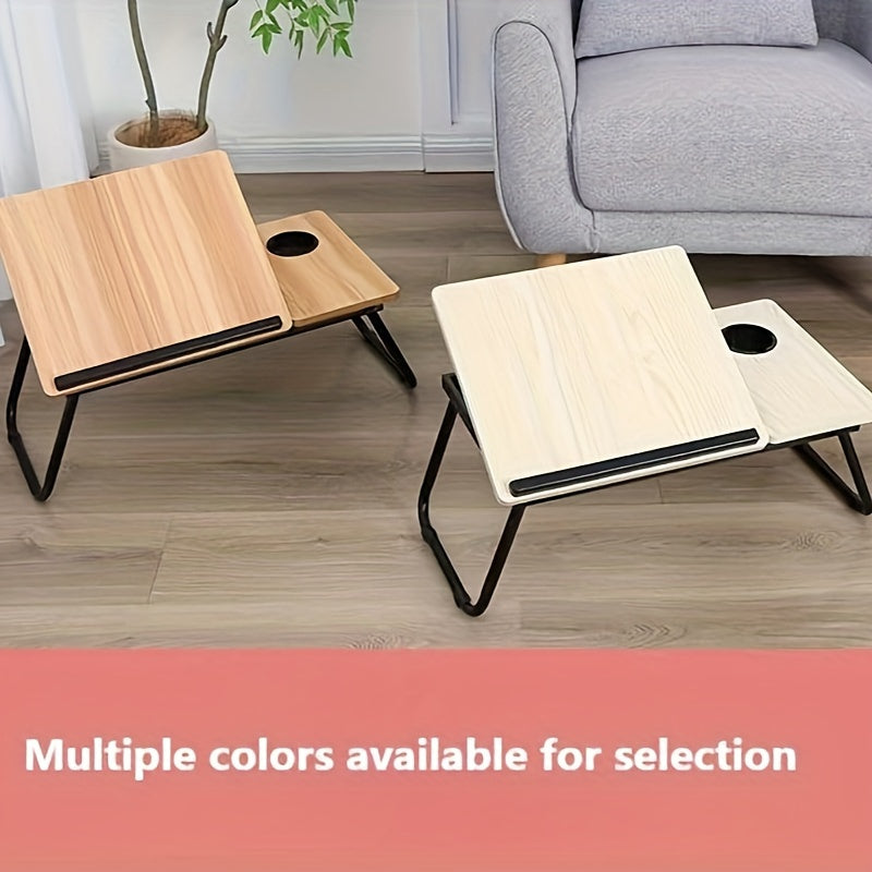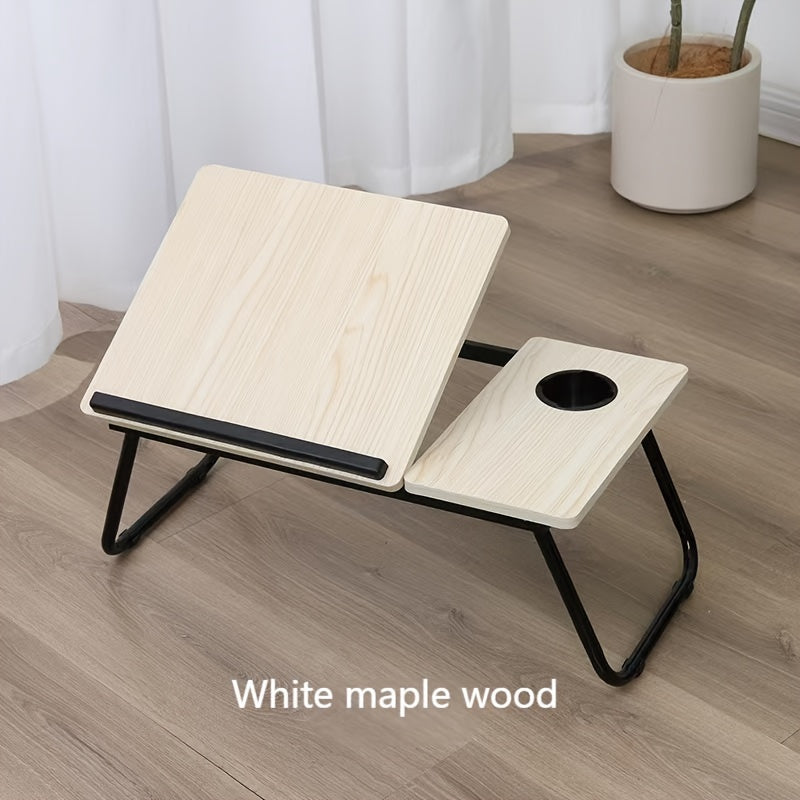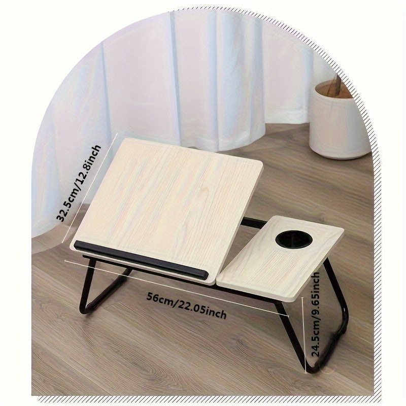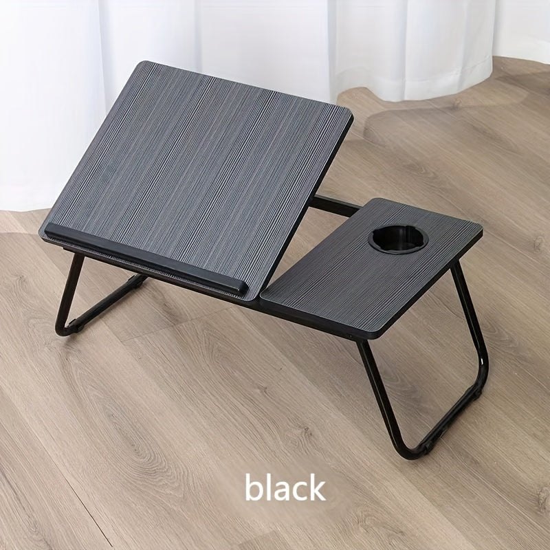 Sozlanadigan yotoq stoliga chashka tutqichli, portativ, yig'iladigan va qulay lap-stol, qora yoki peach rangda