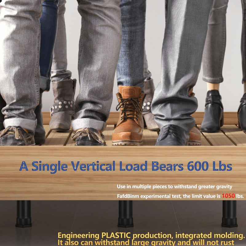 Moslashuvchan yotoq ramkasi qoʻllab-quvvatlash oyoqlari 4 ta, qora plastmassa, Katta va Qirol oʻlchami
