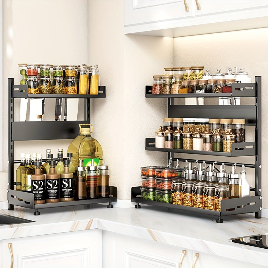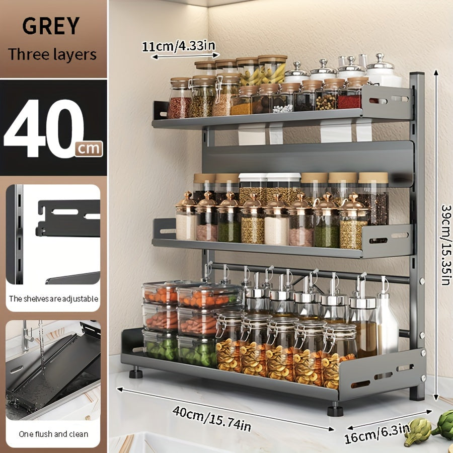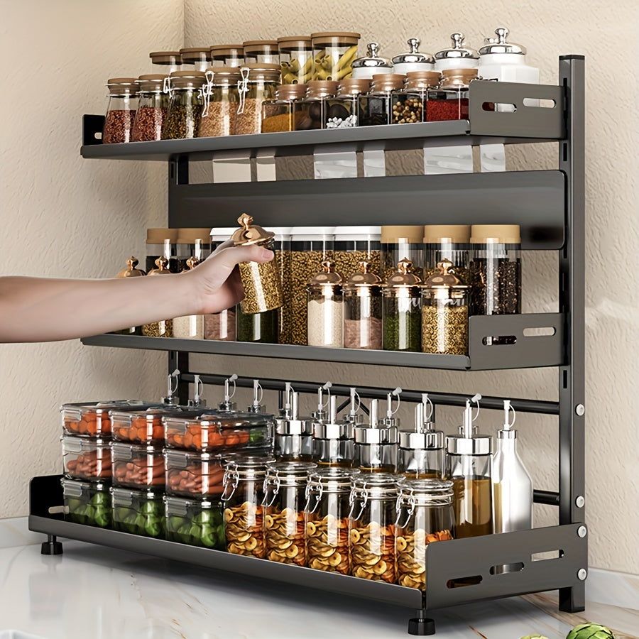 Moslashuvchan devor o'rnatadigan oshxona saqlash qismi, ko'p qavatli metall ziravorlar va asboblar tashkilotchisi