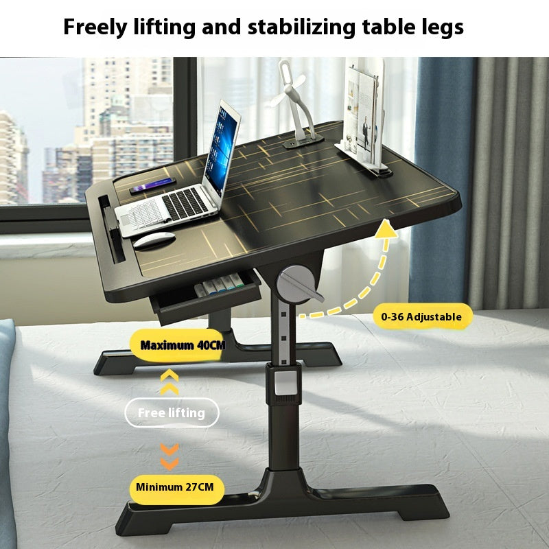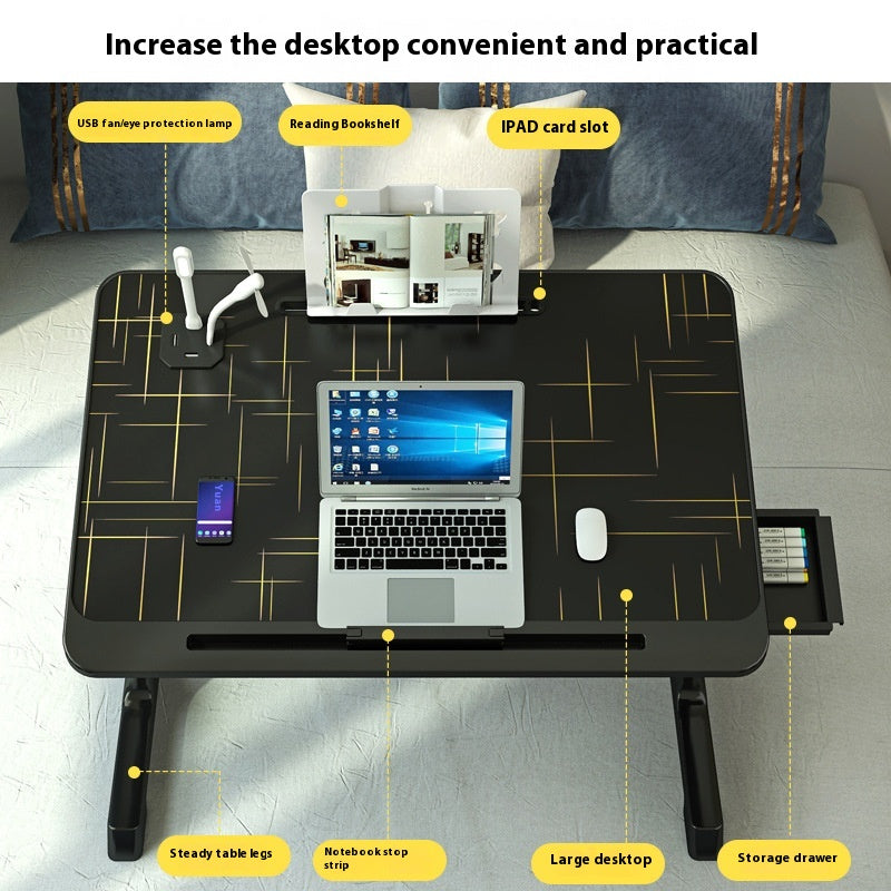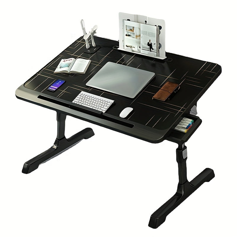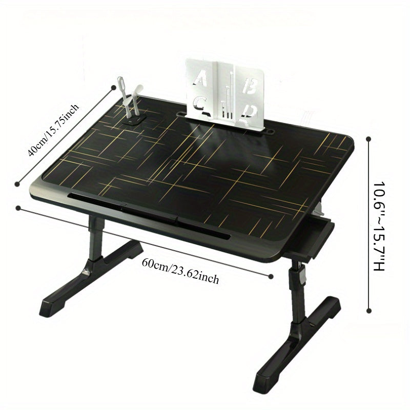 Moslashuvchan yotoq usti uchun noutbuk stoli, bukiladigan oyoqlari va saqlash shkafi bilan