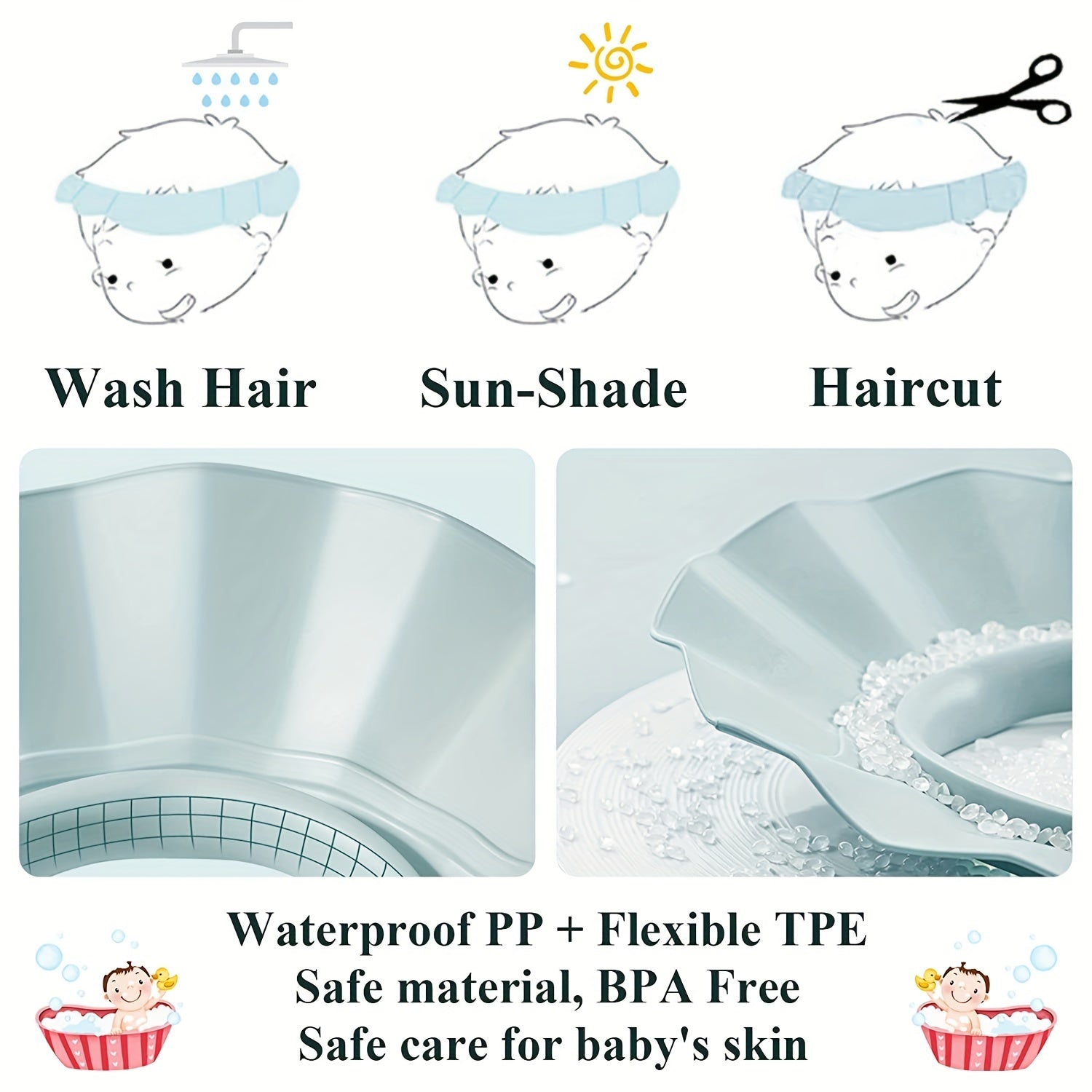 Bolalar dush shapkasi, sozlanadigan, suv o'tkazmaydigan soch qoplami, vannaga chiqish uchun, oq, pushti, ko'k