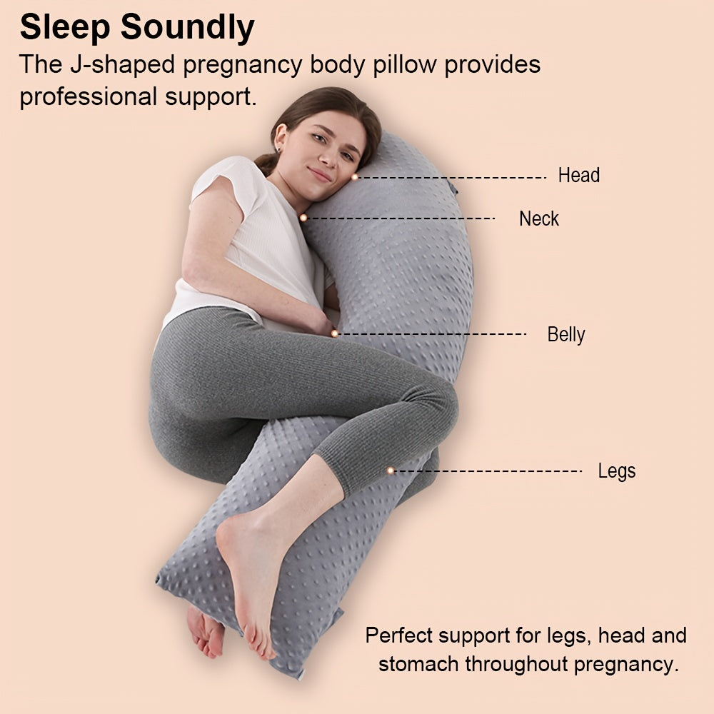 Balandlikka sozlanadigan ultra yumshoq J-shaklidagi homiladorlik yostiqchasi, olib tashlanadigan qopqog'i bilan, qorni va yon tomonida uxlaydiganlar uchun