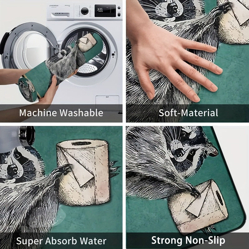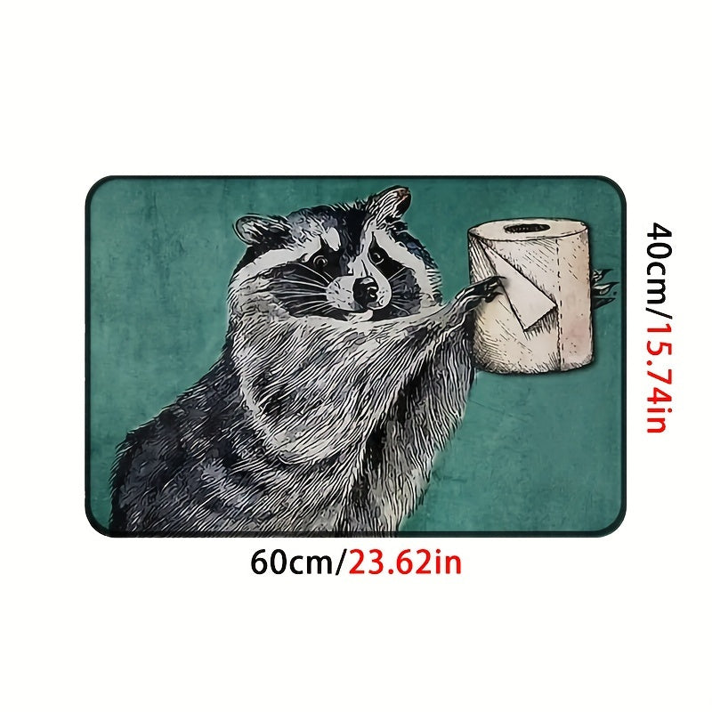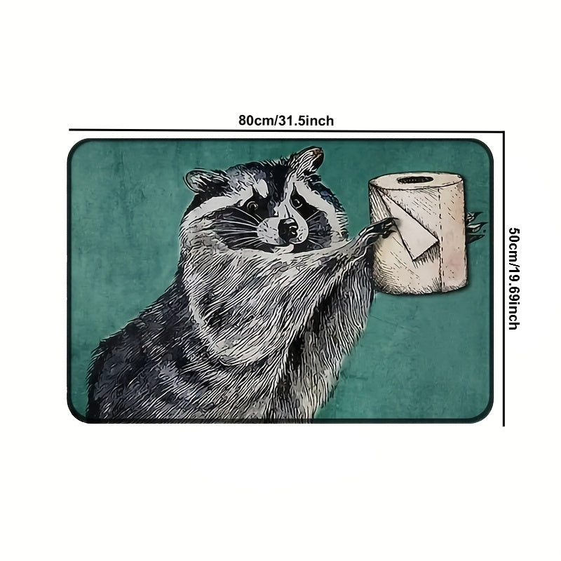 "Tualet qog'ozi dizayni bilan bezatilgan sevimli rakun eshik matosi, polyester tolalaridan tayyorlangan, sirpanmaydigan orqa qismi bilan, xona va balkon bezatish uchun ideal – maxsus ayolingiz uchun mukammal sovg'a"