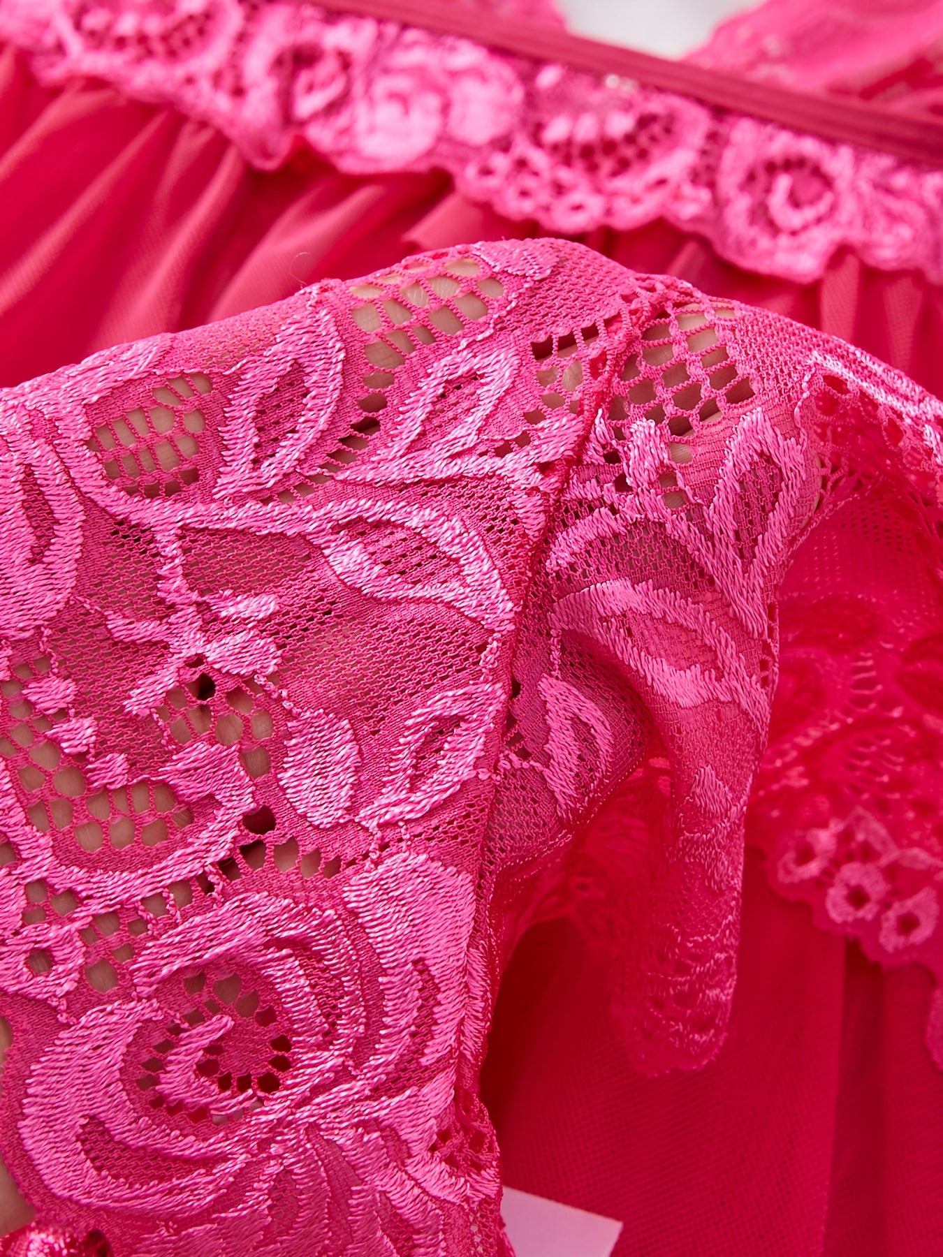 Kichik ko'ylak to'plami, dantel qo'shilishi, yirtilgan yirtilish va bir rangli to'qilgan matodan iborat. 88% poliamid va 12% elastandan yengil qo'llab-quvvatlash uchun tayyorlangan. O'rta balandlikdagi ichki kiyimlar, sirg'alish uslubi va yo'q.
