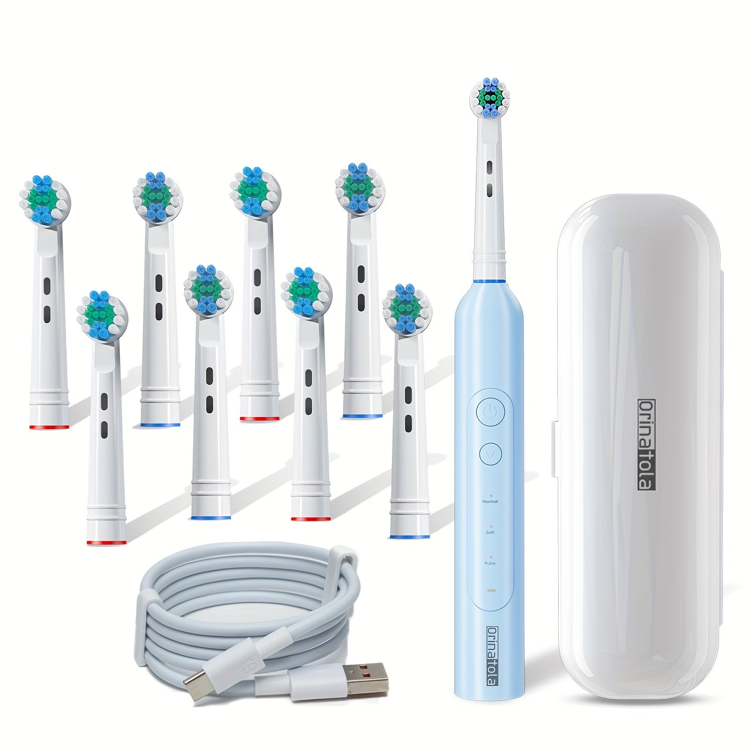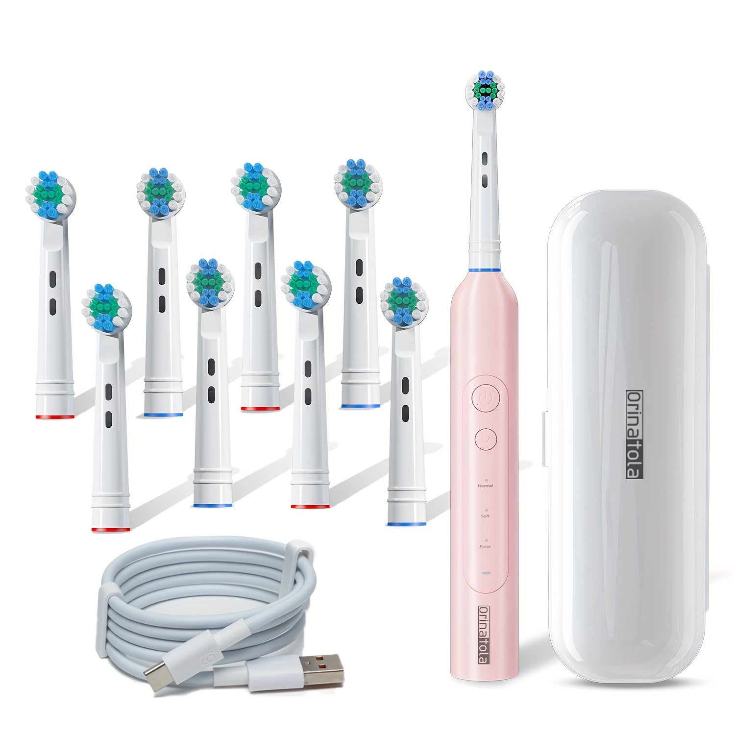 Kattalar uchun elektr tish cho'tkasi, qayta zaryadlanuvchi, aylanadigan, 8 ta boshli, sayohat uchun qadoq