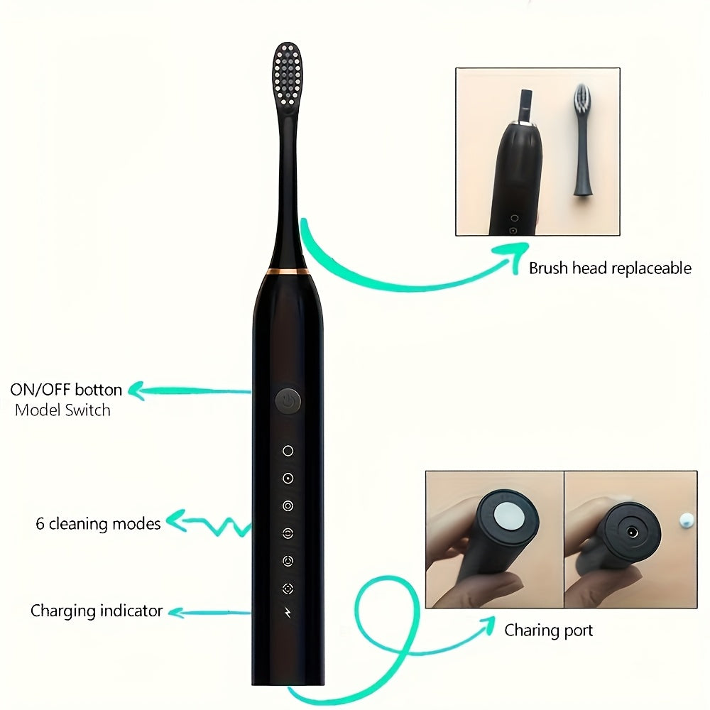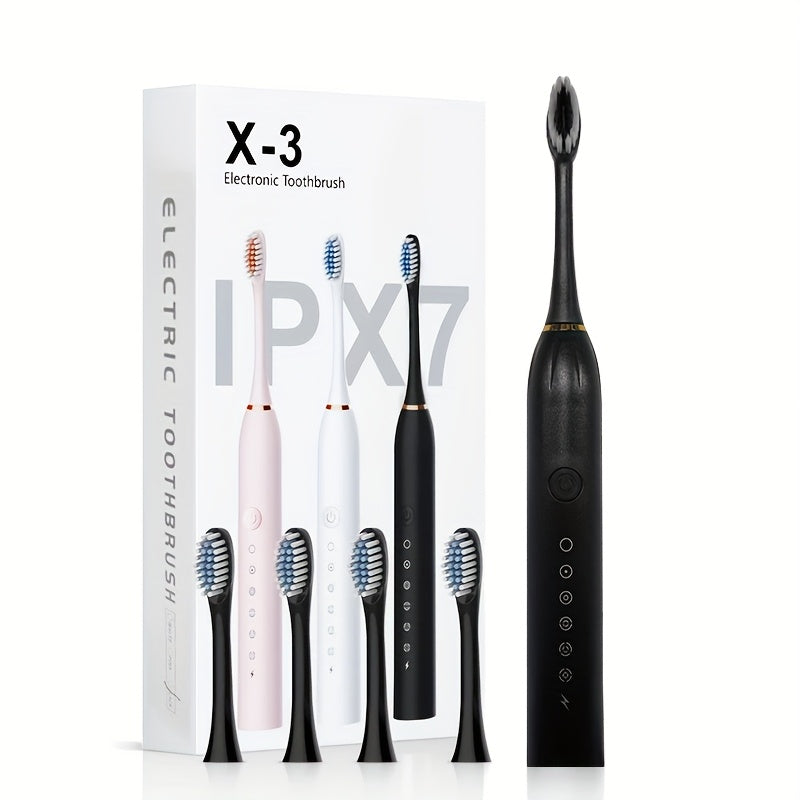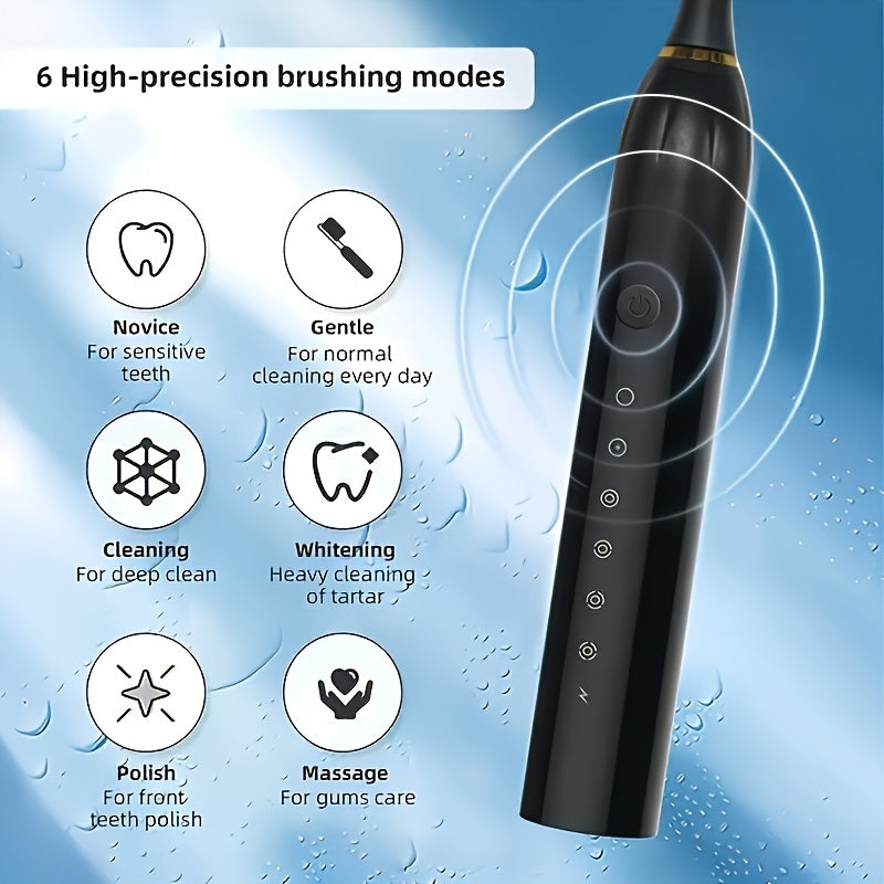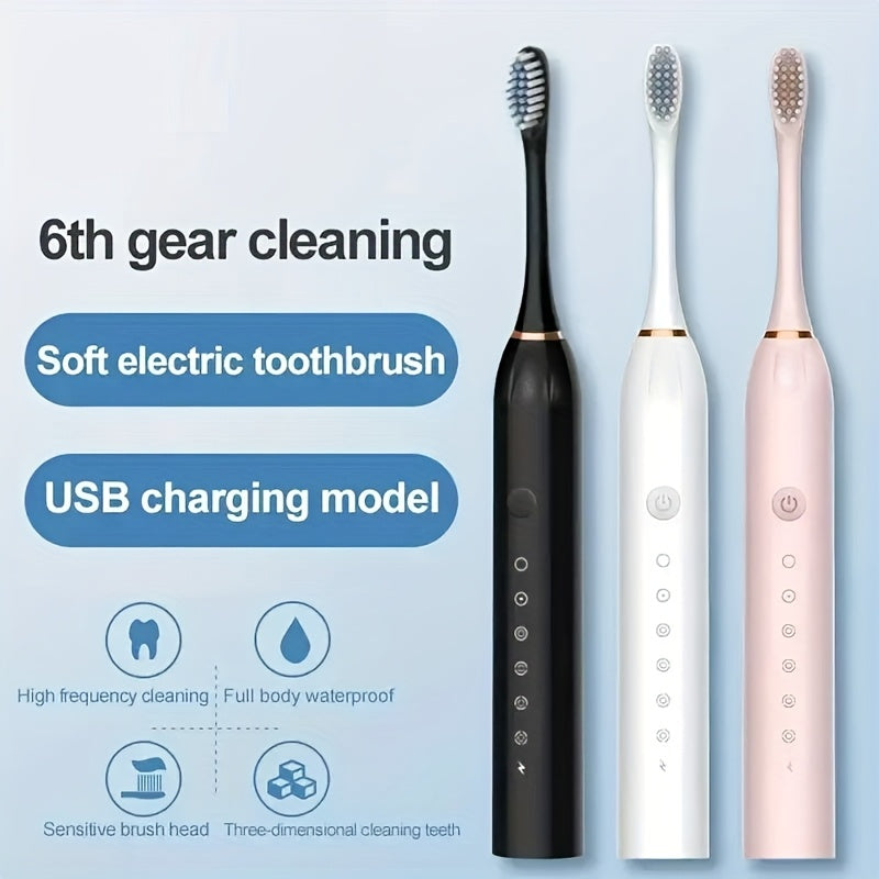 Kattalar uchun elektr tish cho'tkasi yumshoq cho'tkalar, qayta to'ldiriladigan, 6 tezlik, 4 bosh
