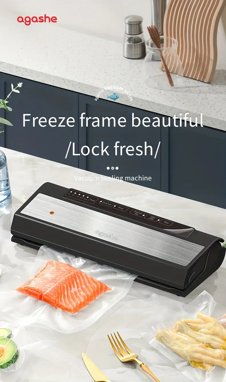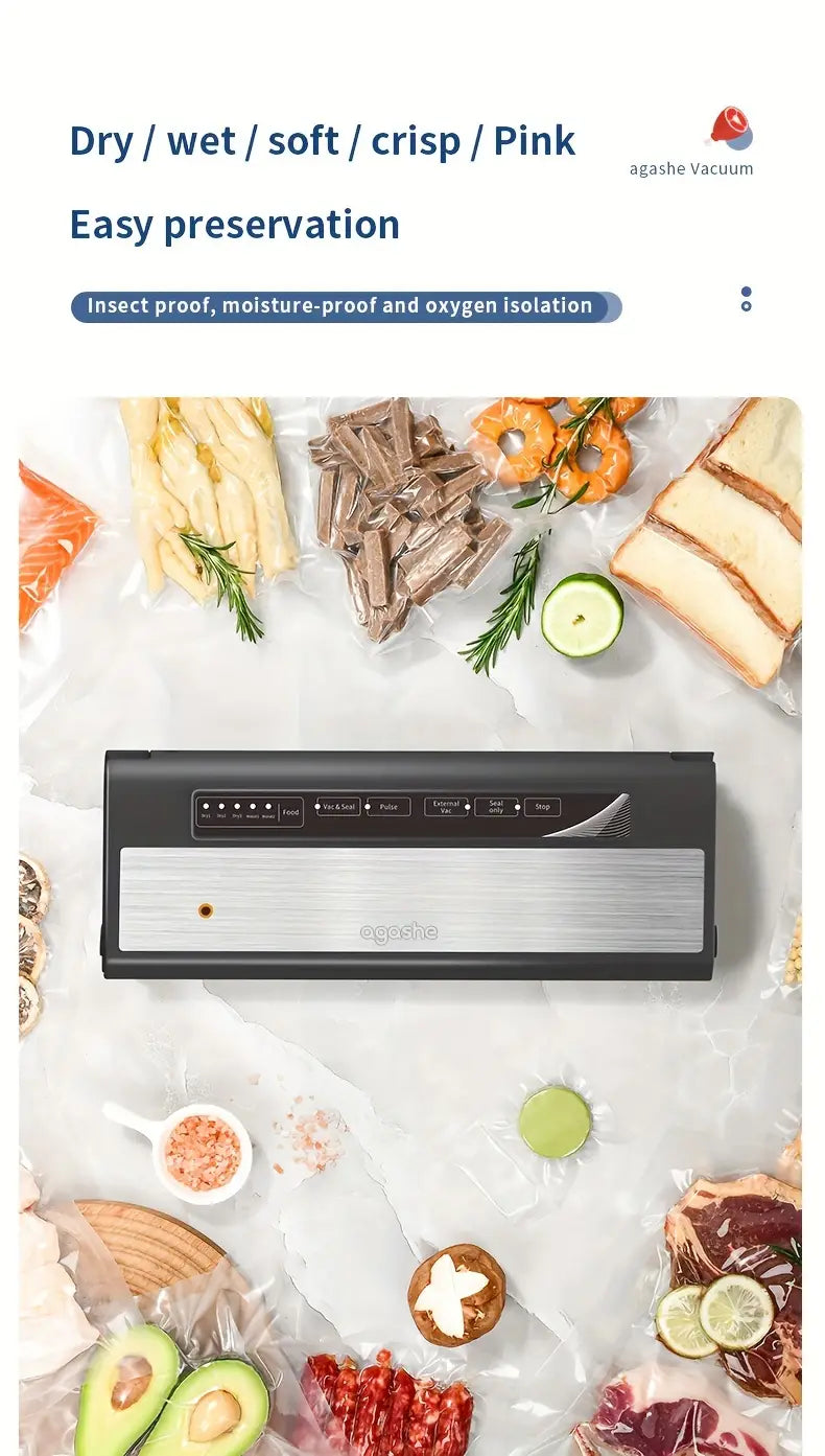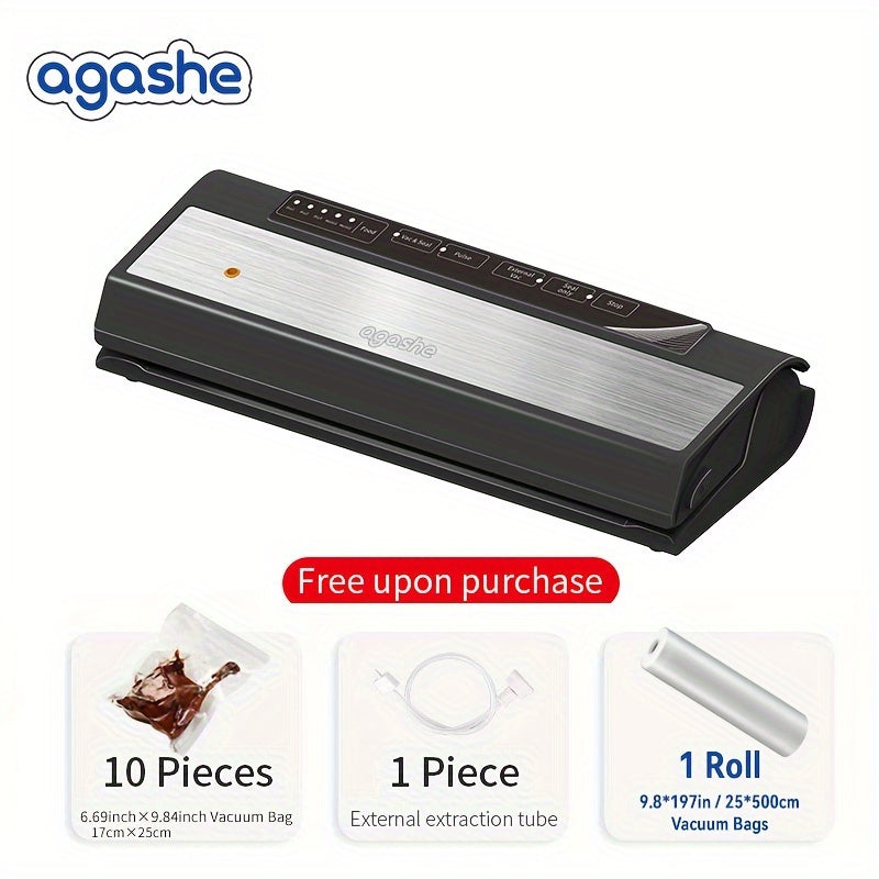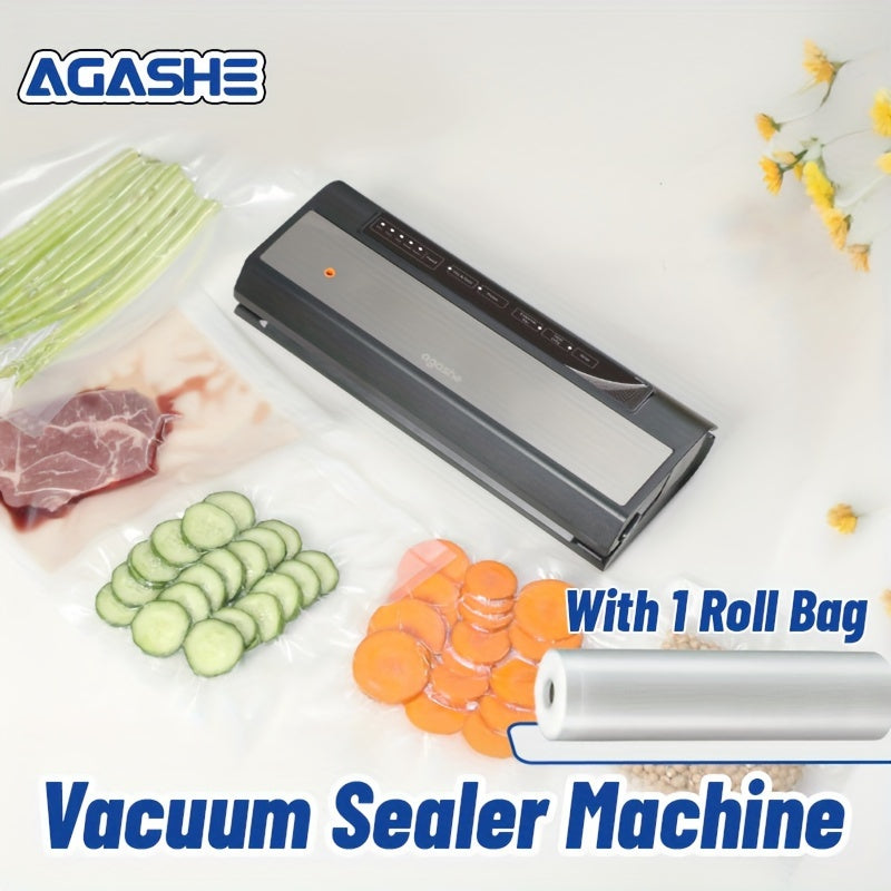 Vakuum Sealer 1 ta rulonli sumka (25*500cm/9.8*197in) bilan uy oshxonasida oziq-ovqat saqlash uchun. Avtomatik yopish funksiyasi, 28cm kenglikdagi sumkalar uchun mos, zanglamaydigan po'lat panel, 5 ta issiqlik
