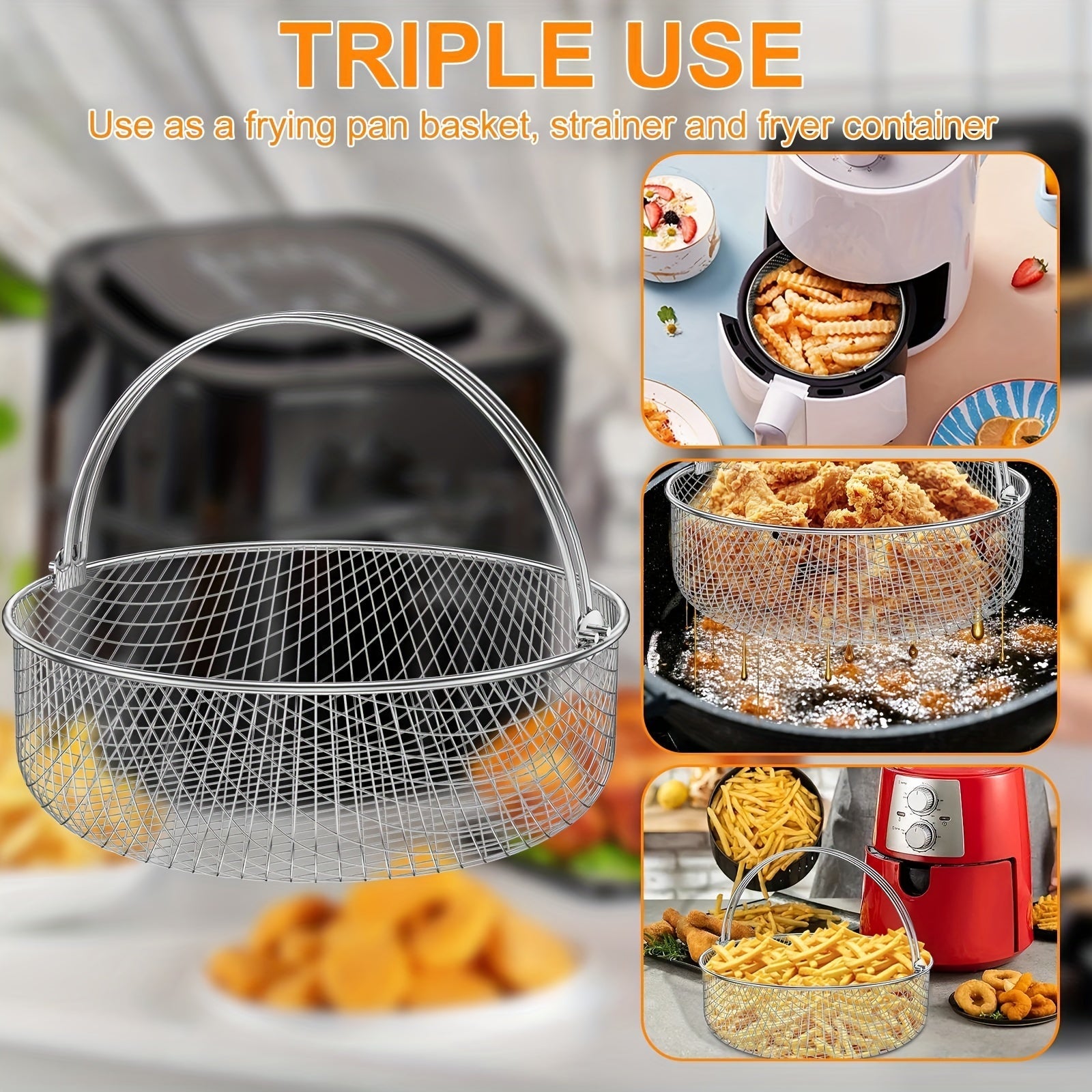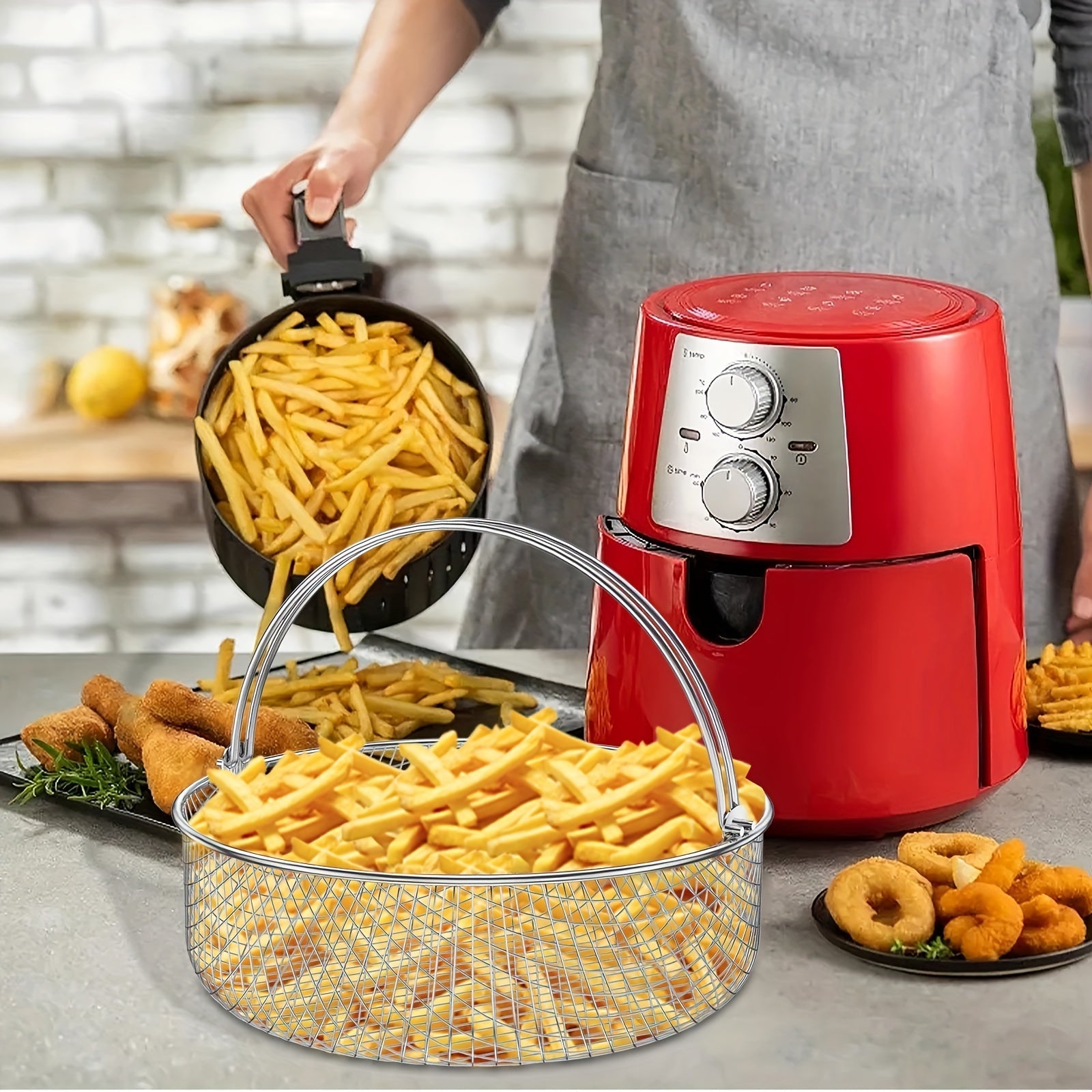 Havoni qovurish uchun mesh to'r - zanglamaydigan po'latdan yasalgan, tutqichi bilan - sog'lom ovqat tayyorlash uchun ideal, uy oshxonalariga mos
