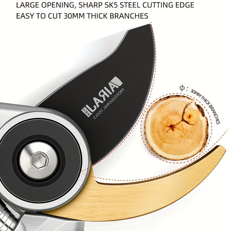 AIRAJ ergonomik qirqish qaychisi, oson shox kesish uchun ultra o'tkir pichoq bilan, qulay tutqichlar bilan, meva daraxtlari, gullar va bog'dorchilik ishlariga ideal.