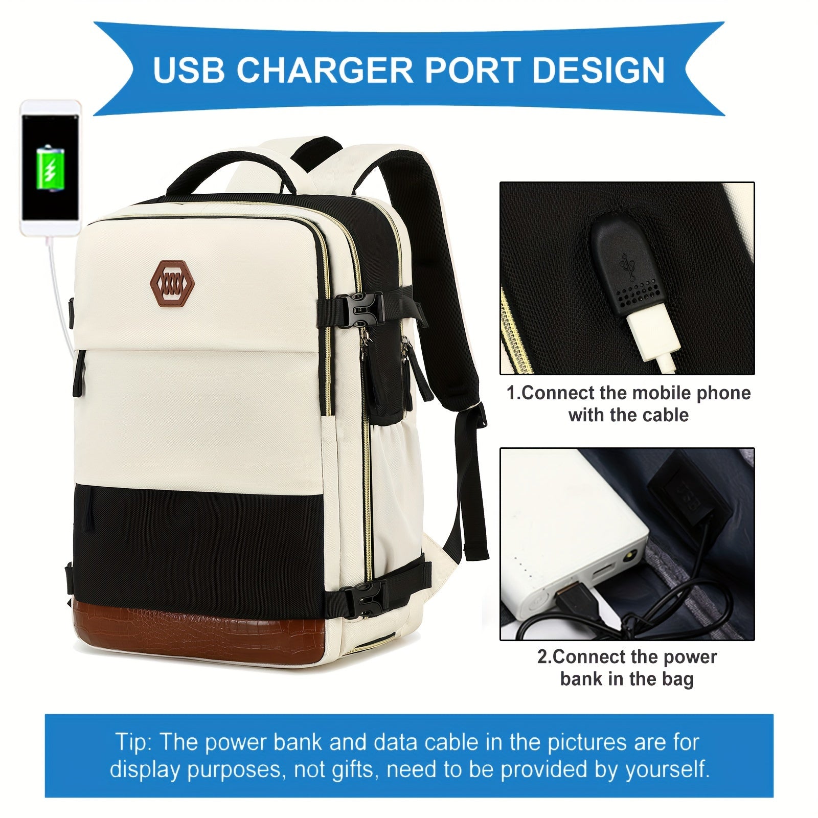 Ayollar uchun sayohat backpacki, poyabzal bo'limi bilan, noutbuk sumkasi, sozlanadigan kamar, zip yopilishi