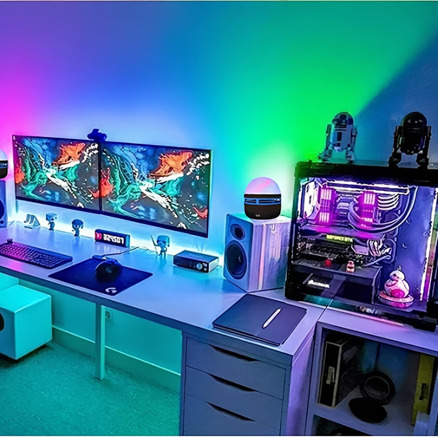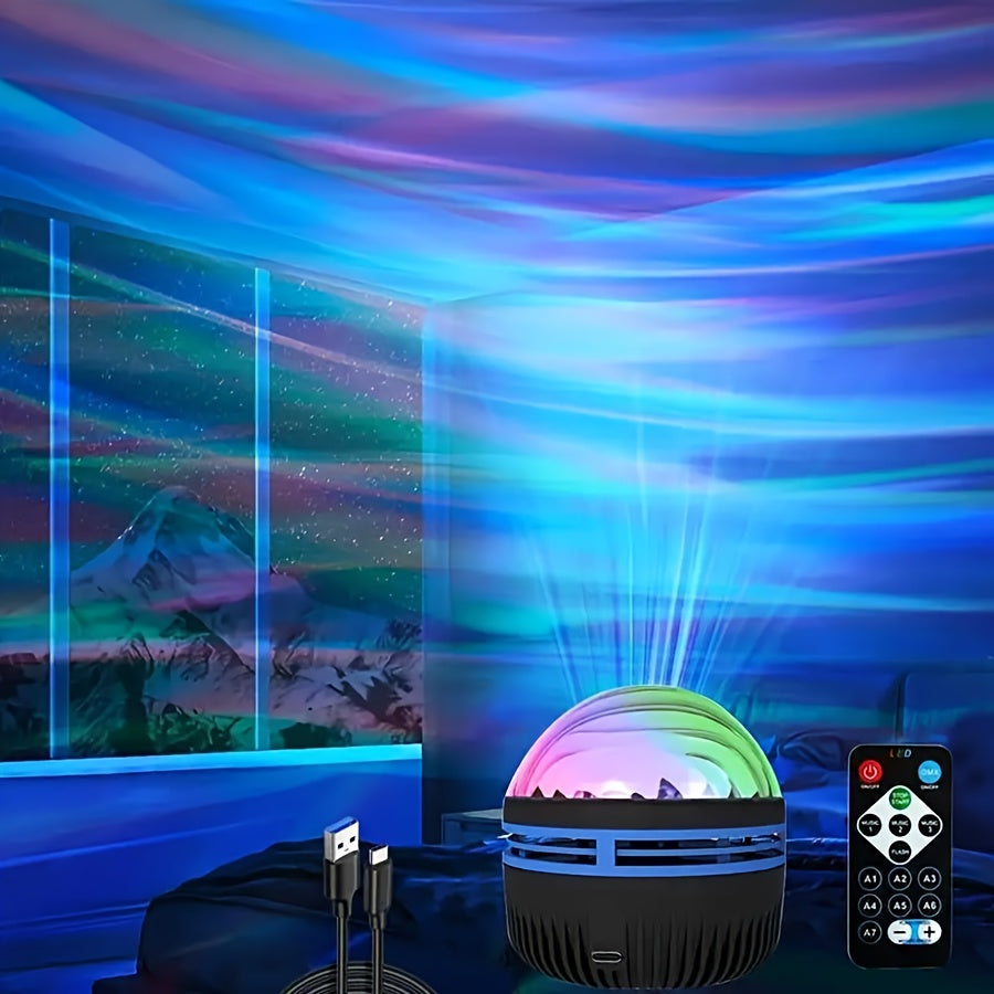 Turli galaktika yoritish effektlariga ega Aurora proyektori, o'yin xonalari, partiyalar va yotoqxonalarga ideal, xona va uy dekoratsiyasi uchun LED yoritish proyektori sifatida.
