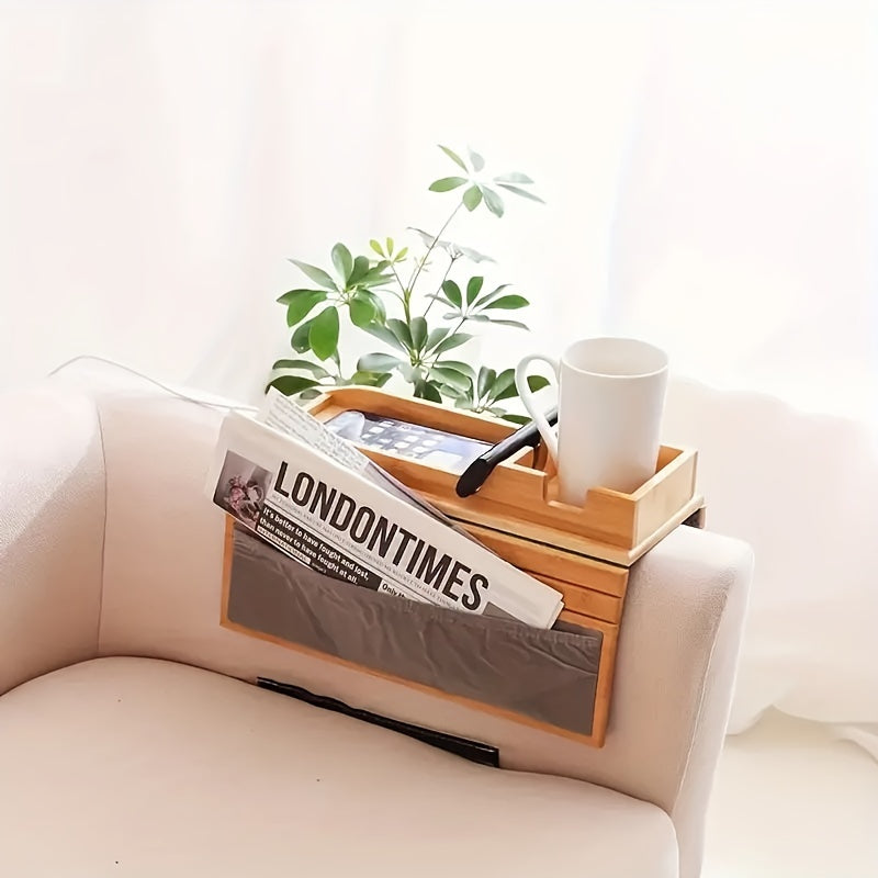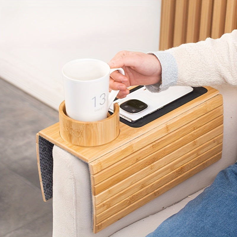 Divaningiz uchun foydalanish oson bo'lgan stakan ushlagich. Qo'ltiq panjasi qulay tarzda yig'iladi va ichimliklar, mobil telefonlar, masofadan boshqarish pultlari yoki atıştırmalıklar saqlash uchun juda mos keladi.