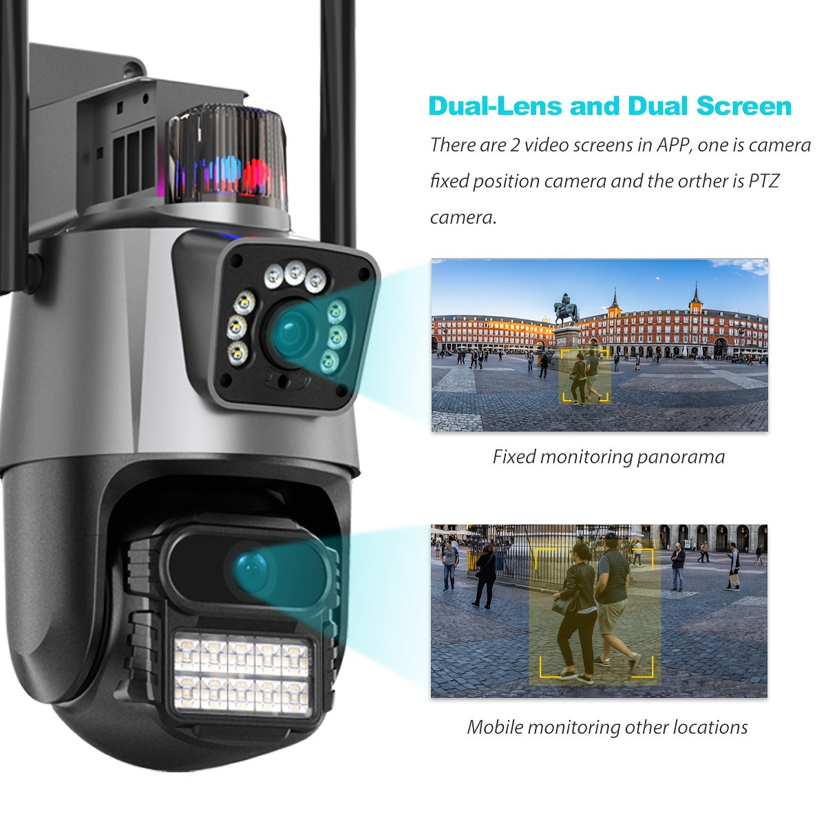 6MP POE simsiz xavfsizlik kamerası, 3K Full HD ikkilamchi linza, AI insonni aniqlash, avtomatik izlash, kechqurun ko‘rish, ikki tomonlama audio, ichki va tashqi foydalanish uchun