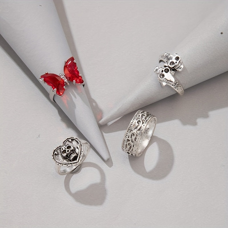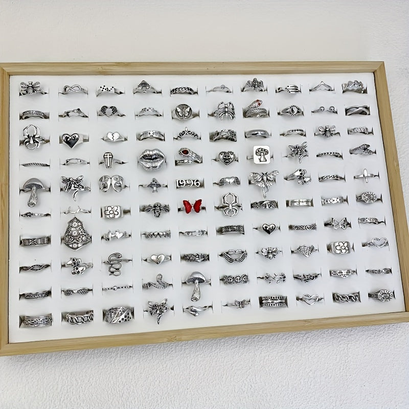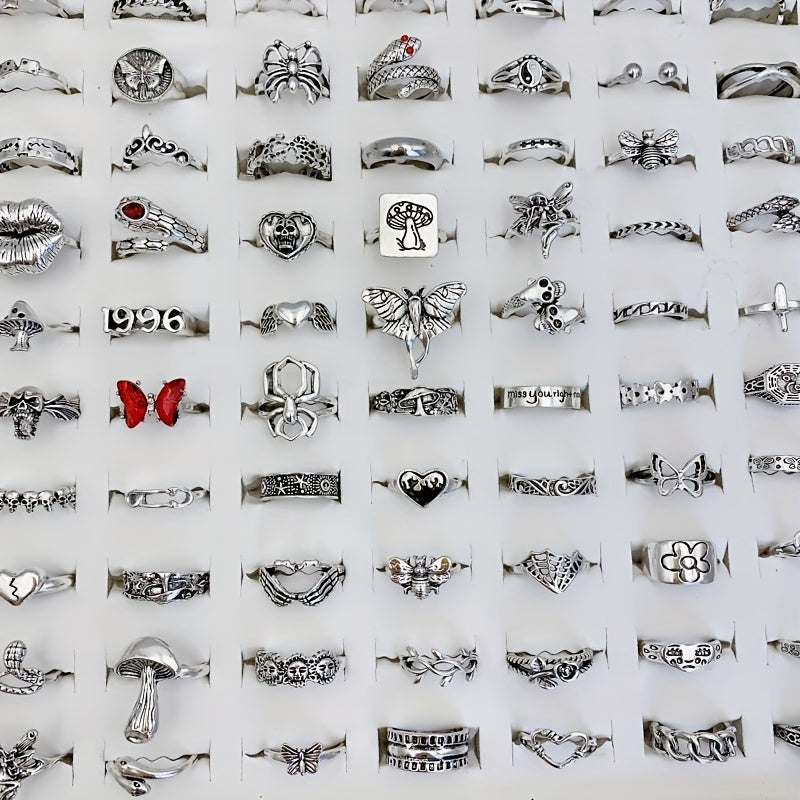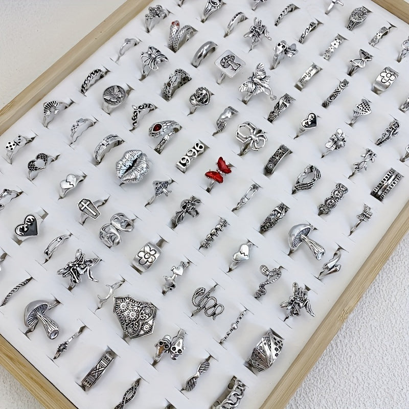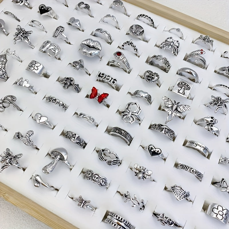 Antik Kumush Qotishma Halqalar Retro Punk Gotik Dizaynlar bilan - 30/50/100 Dona to'plami, Qushlar, Qasrlar va Ilonlar bilan - Erkaklar va Ayollar uchun Hip Hop Partiyalarida Mukammal Zargarlik Sovg'asi