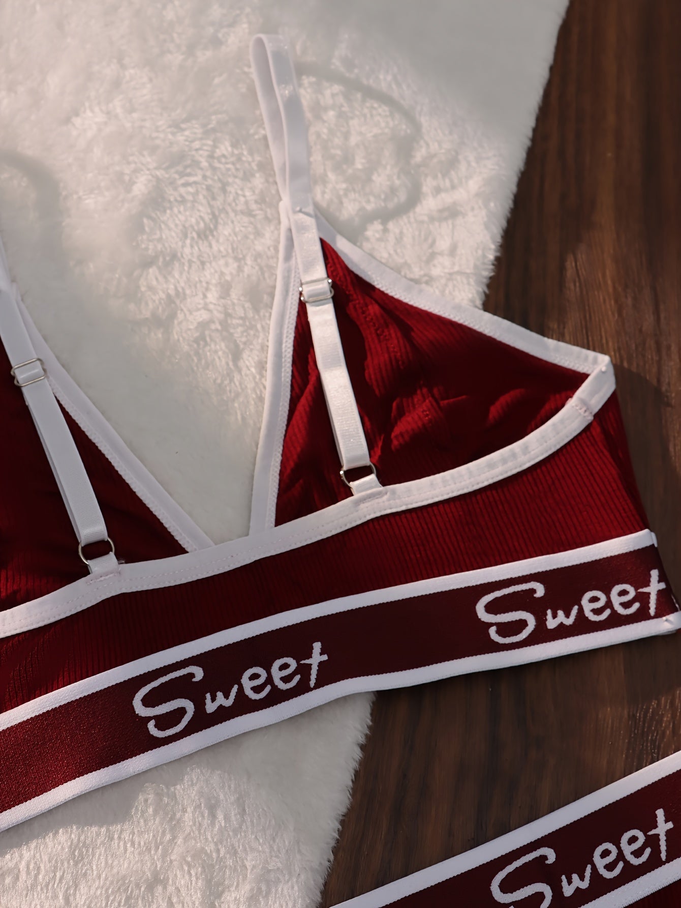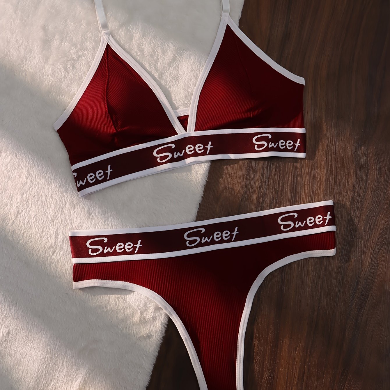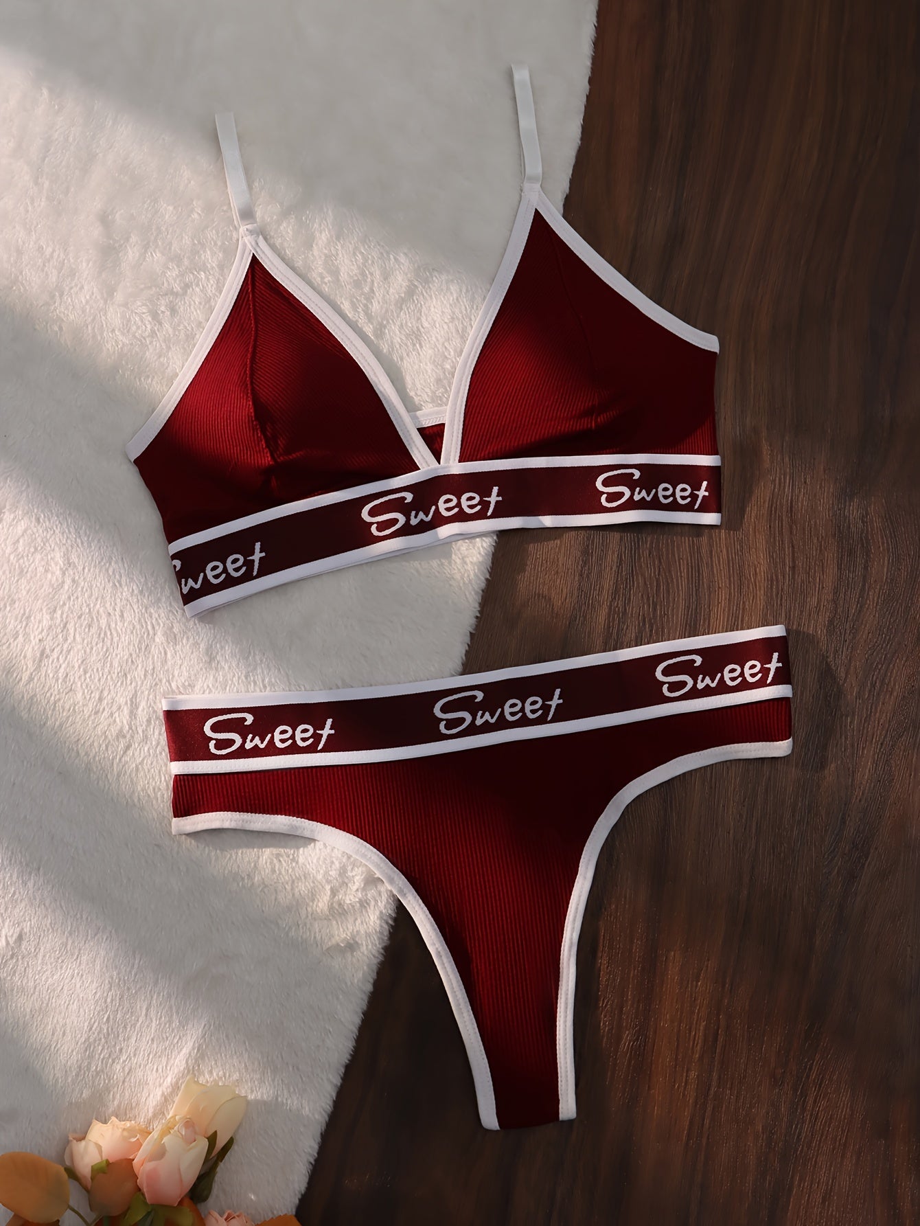 Ayollar uchun rangli blokli kamzuli brassiy va thong bilan harf bosma, sport ichki kiyim to'plami.