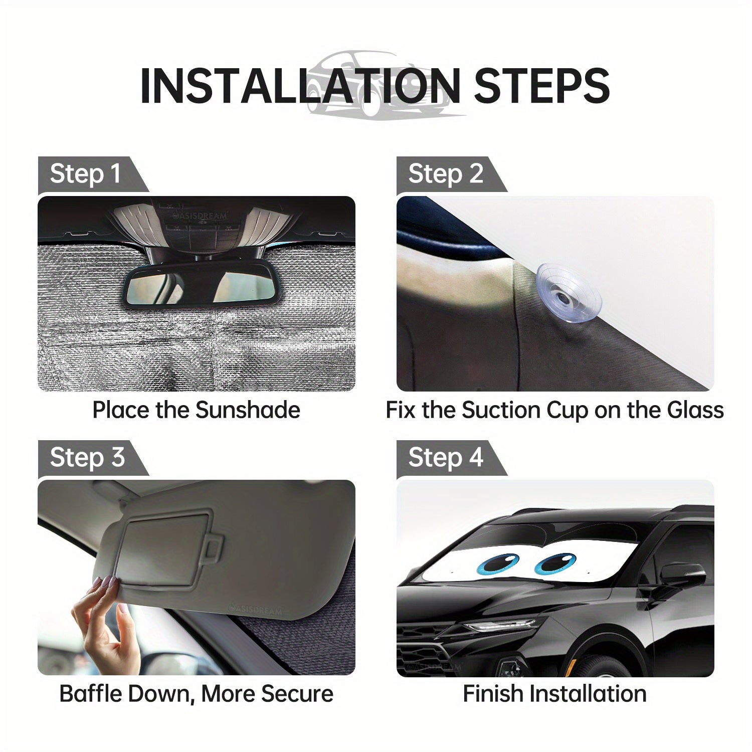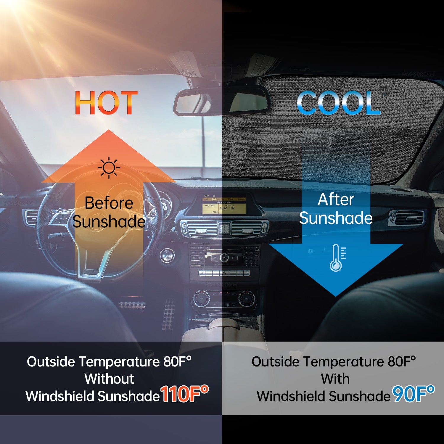 Auto quyosh nuri himoyalovchi old oynasi, RV SUV uchun, 144cm x 28cm