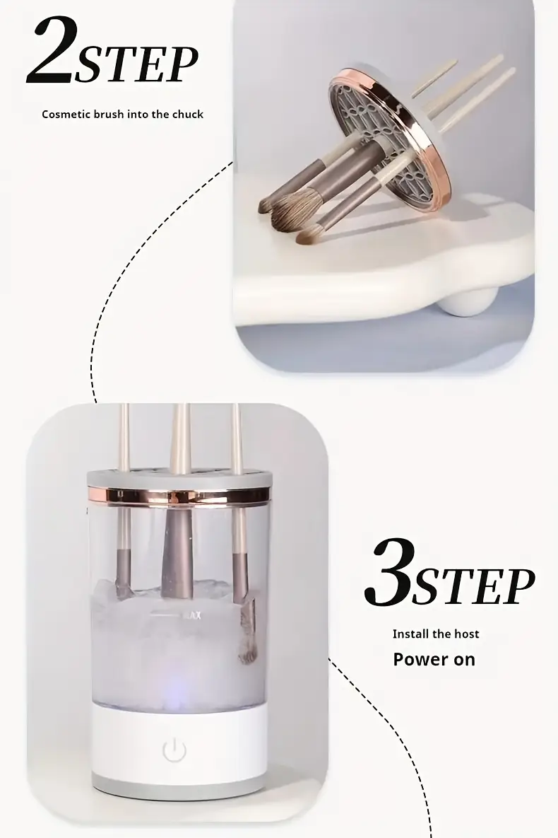 USB quvvat manbali AutoClean elektr makiyaj cho'tkasi tozalagichi, cho'tkalar va gubkalarni tez va qo'l bilan ishlatmasdan tozalash uchun mo'ljallangan, sayohat va uyda foydalanish uchun mukammal, qo'lda ishlatish zaruriyati yo'q.