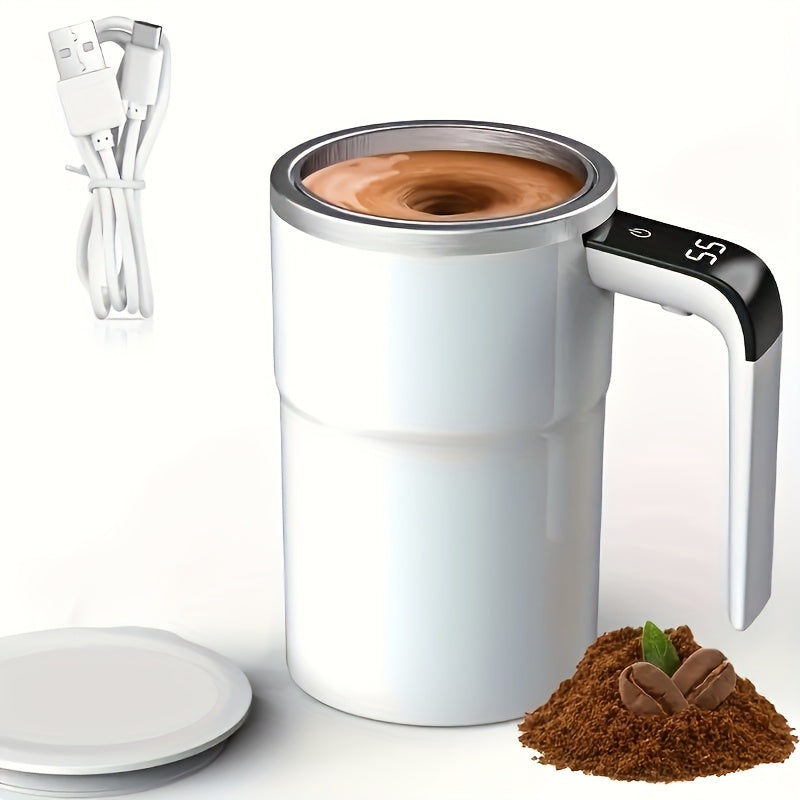 Avtomatik zanglamaydigan po'latdan yasalgan qahva stakani USB bilan qayta zaryadlash mumkin bo'lgan aralashtiruvchi bilan