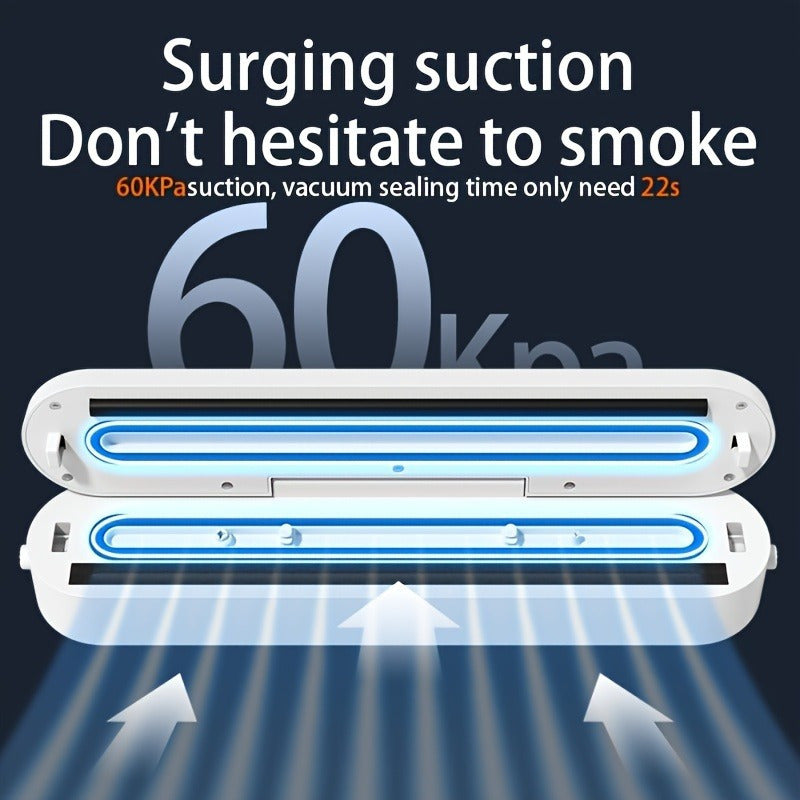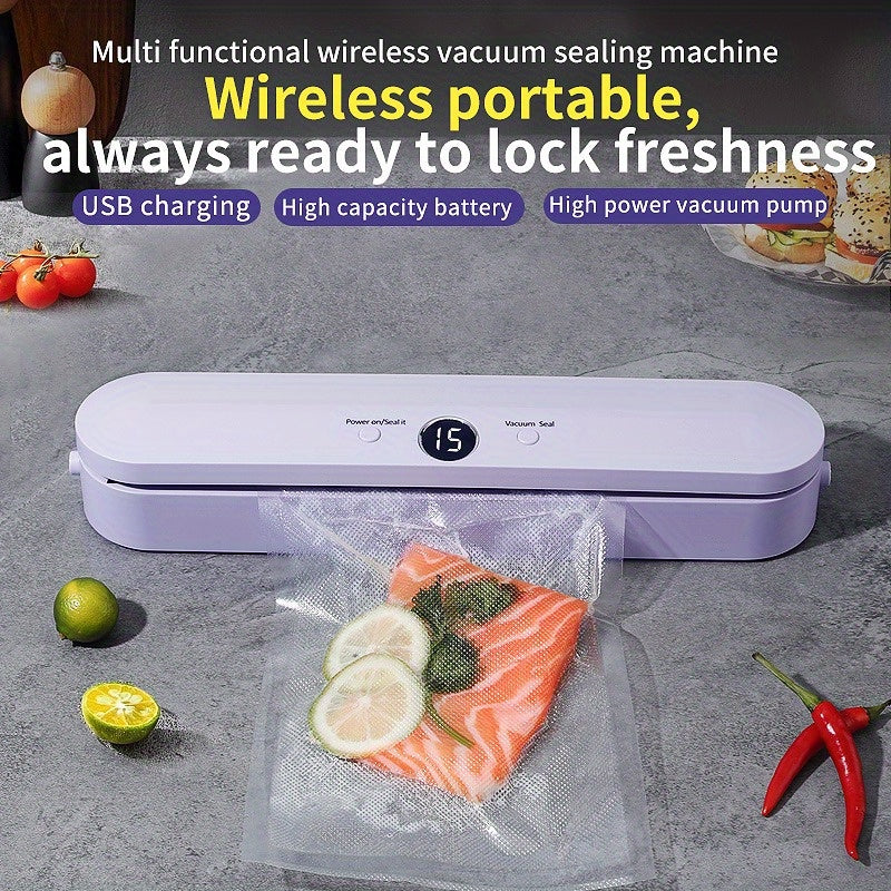 Ovqatni saqlash uchun avtomatik vakuum yopishtiruvchi, USB orqali qayta zaryadlanadigan 1500mAh lityum polimer batareyali, atıştırmalıklarni yopishtirish uchun