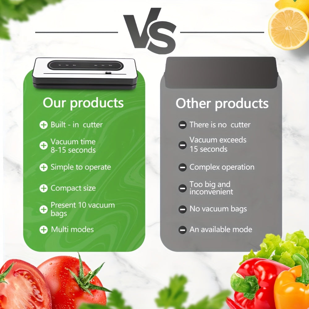 Avtomatik vakuum yopish mashinasi, kesgich bilan, quruq va nam oziq-ovqat rejimlari, LCD sensorli ekran, kuchli suv o'tkazmaydigan, oshxona oziq-ovqat saqlash