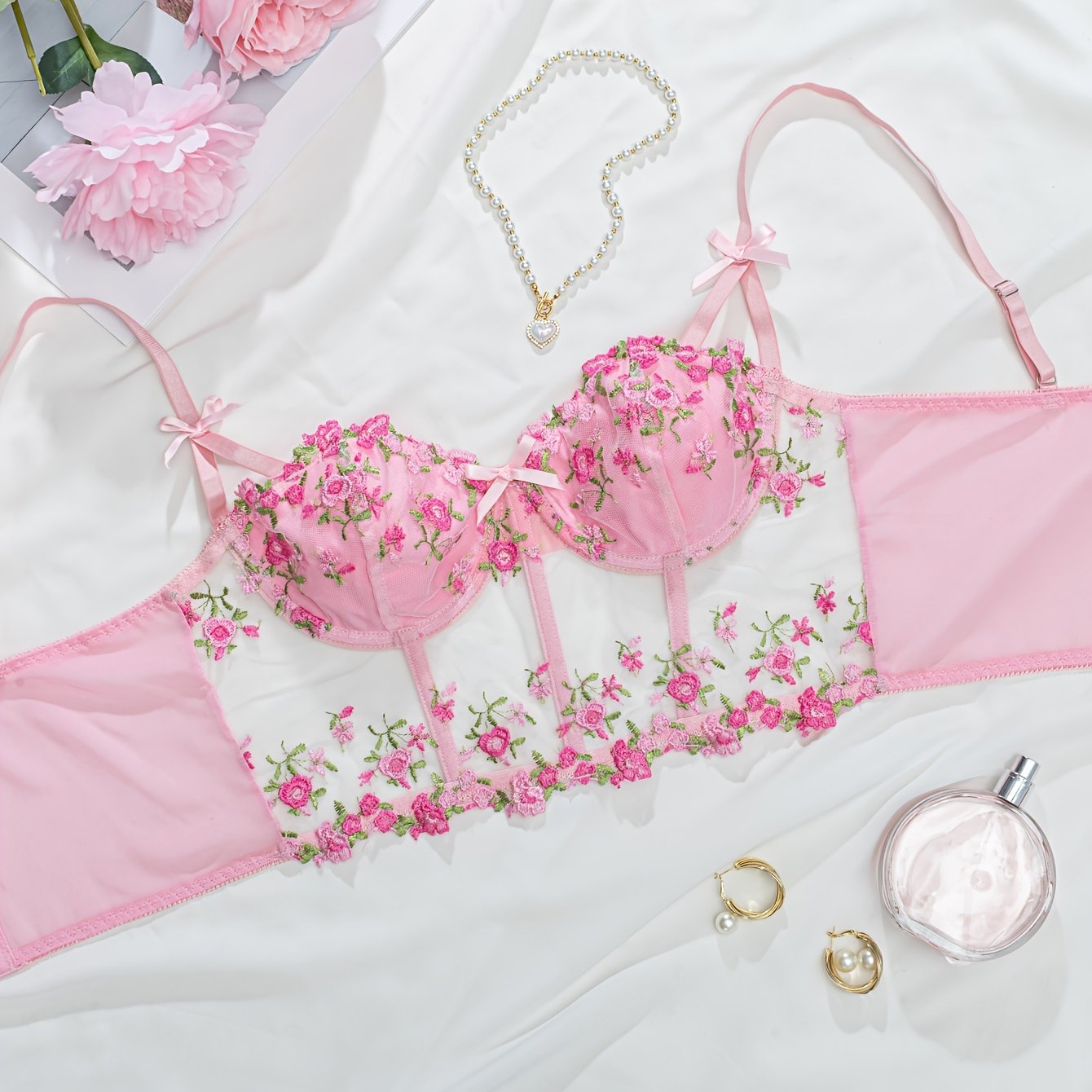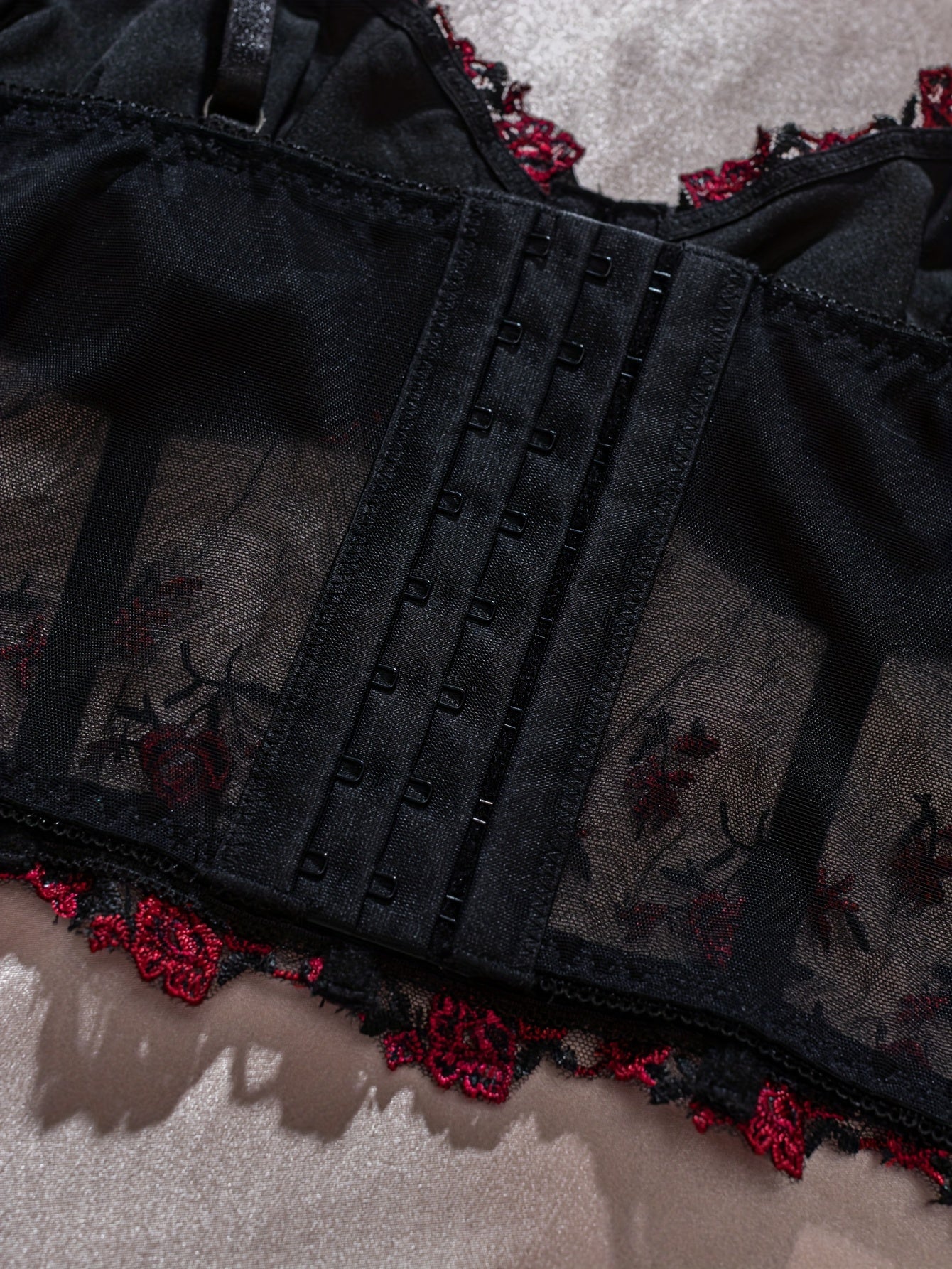 Orqa bo‘lsiz bra, bezakli tarmoq, sozlanadigan tokchalar bilan, yarim shaffof, nafis ayollar uchun