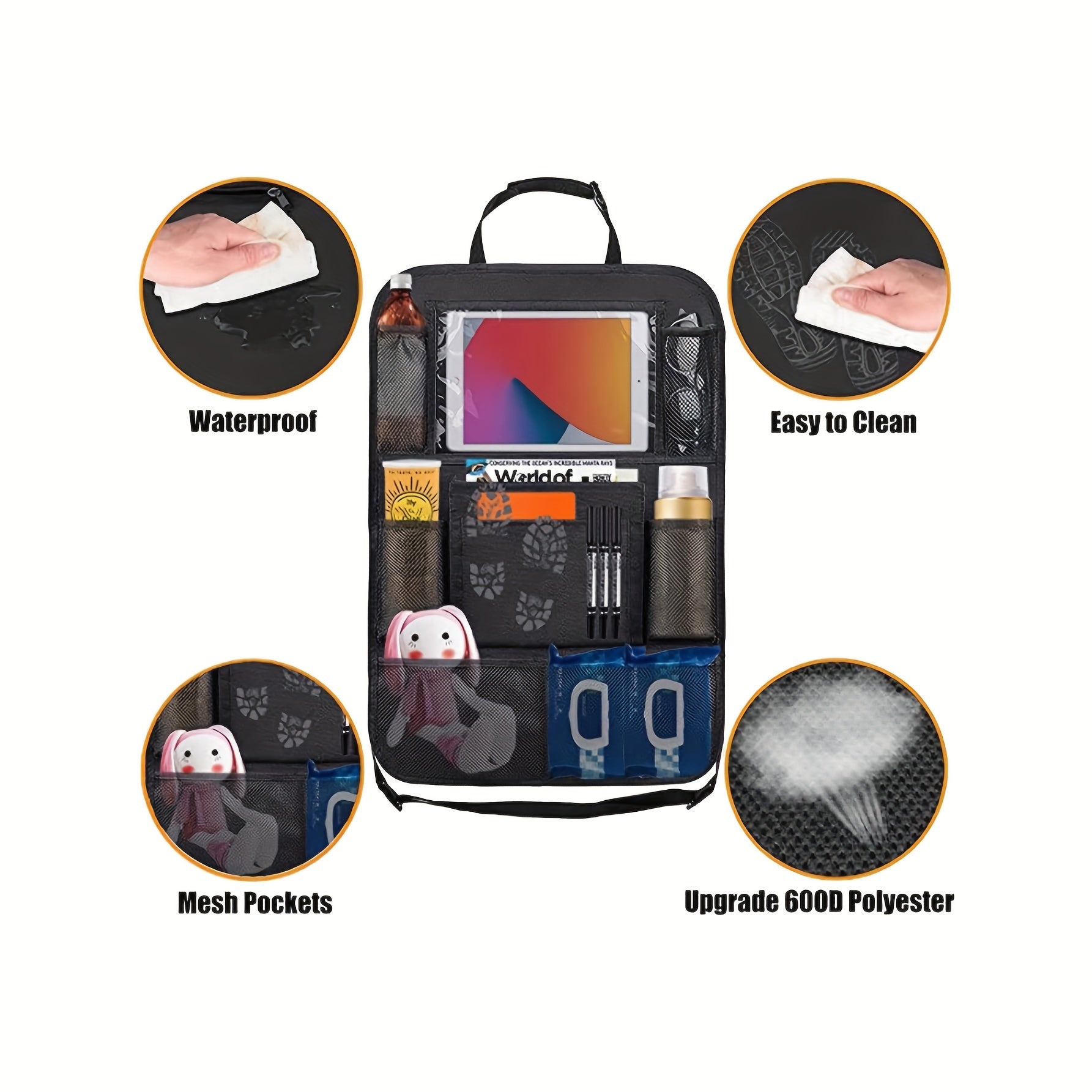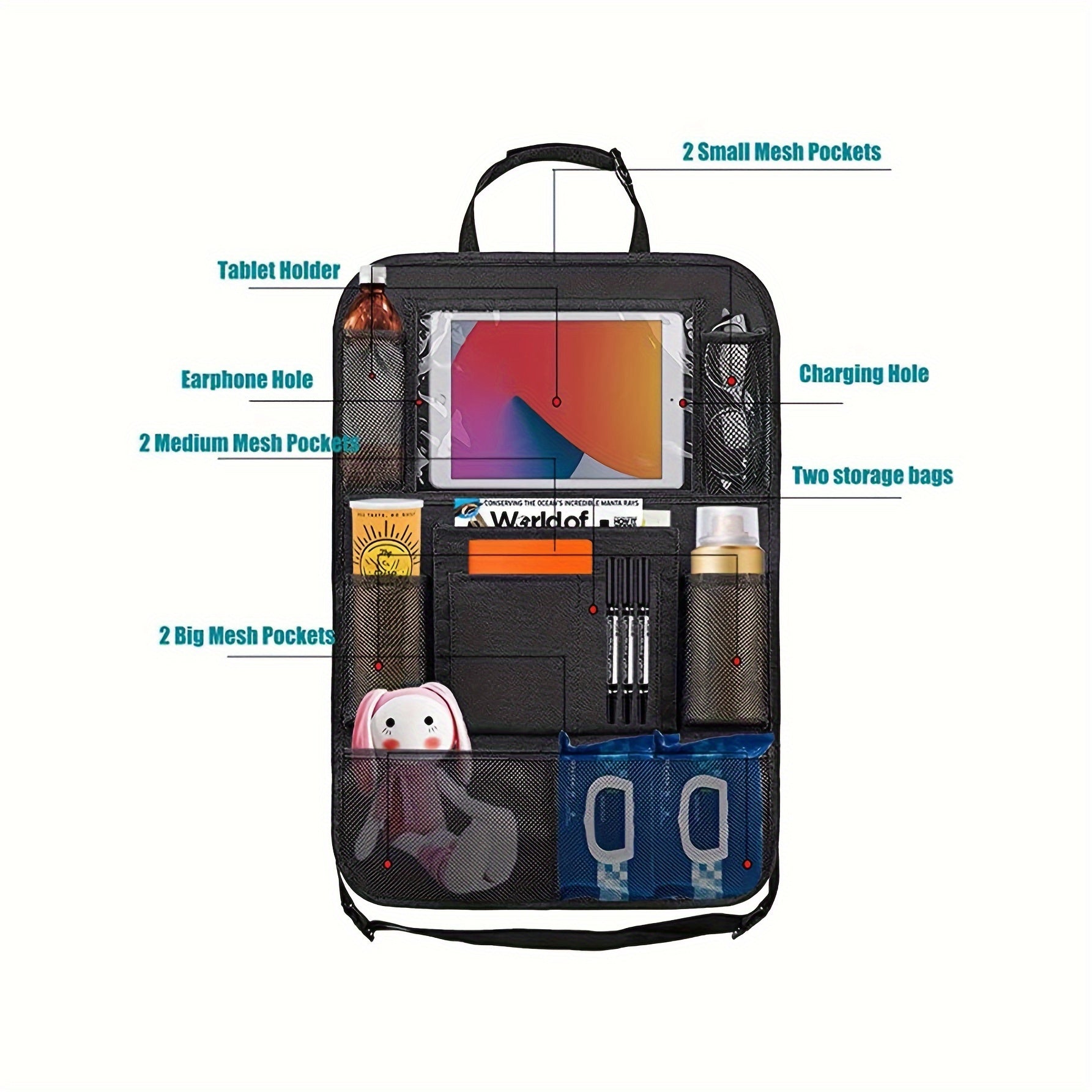Bolalar orqa o'rindiq uchun planshet tutgichi va tarmoq cho'ntaklari bilan avtomobil o'rindiq tashkilotchisi
