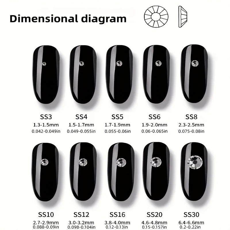 1440/288 dona tekis orqa kristal rhinestones, tirnoq san'ati va aksessuarlar uchun