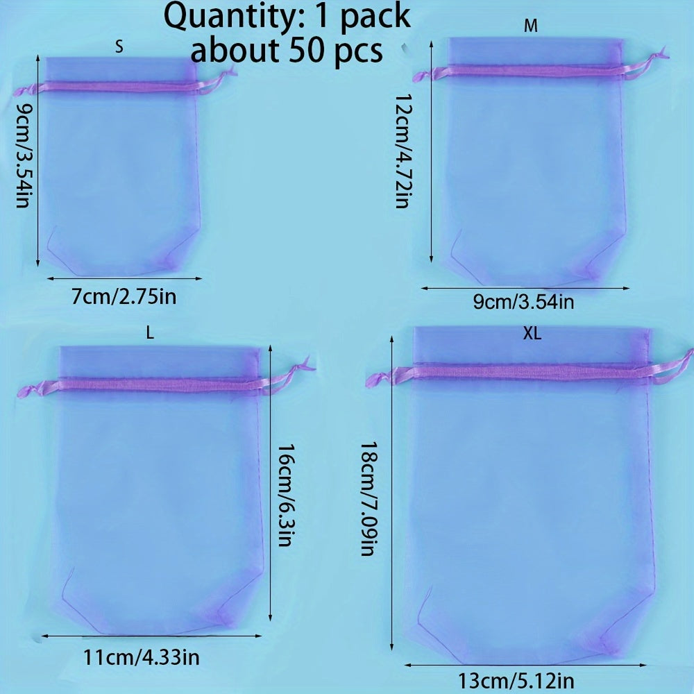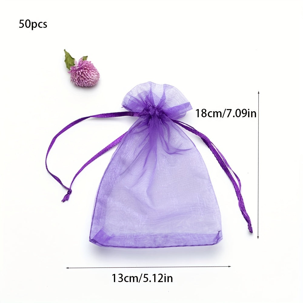 Turli xil binafsha organza sovgʻa zargarlik buyumlari chizilgan sumkalar 50 dona
